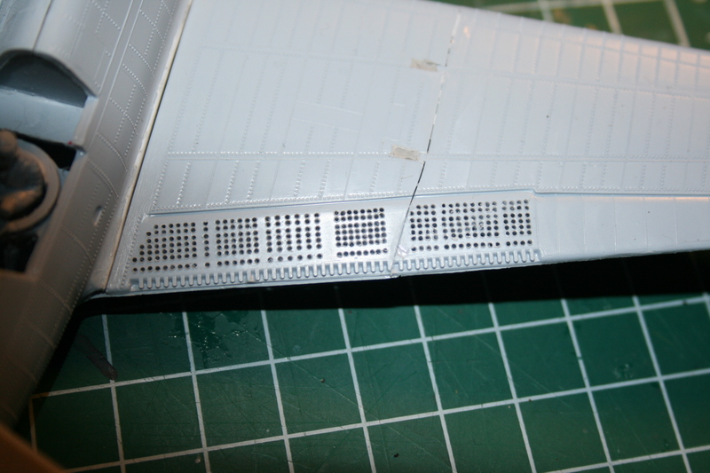 Da sie 4 bzw. 5 gelochte Sturzflugbremsen hat, und die Löcher nur angedeutet sind, heißt das erstmal für den Erbauer 1000 Löcher zu bohren ....