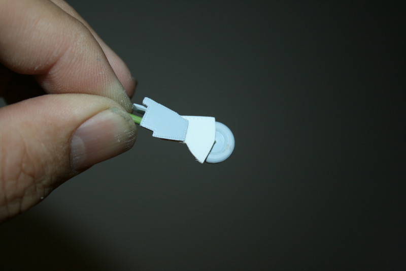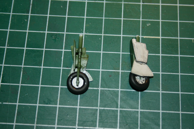 Die Kanonen wurden durch Kanülen ersetzt, die mit einem Feuerzeug durch ausglühen schwarz angelassen wurden. Die Fahrwerksklappen waren zusammen gegossen, weshalb ich den unteren Abschnitt abgesägt und mit Sheetmaterial ersetzt habe.