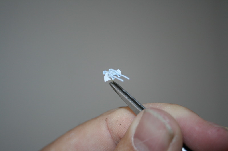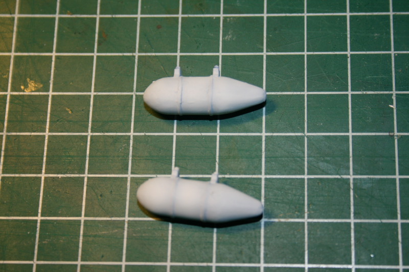 Die Tanks sind nicht wirklich der Renner. Die Nahtstelle war unförmig, so dass ich das Ganze dreimal gespachtelt und verschliffen habe. Anschließend mit Blau grundiert und mit Weiß lackiert. Mit pigmentierten Bodenglänzer versiegelt.