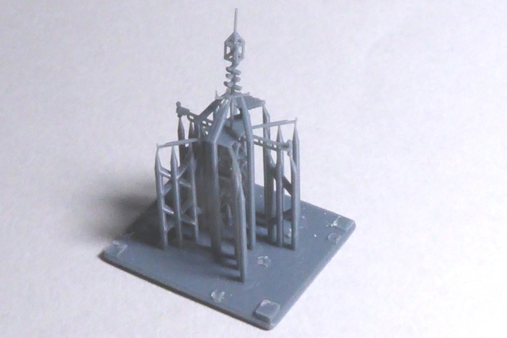 Ein weiter Träger enthält den Mast, der mit seinen Rahen und Antenne in einem Stück gedruckt ist.