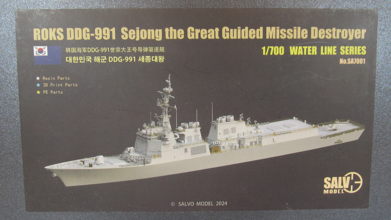 Salvo Model bietet einige Bausätze moderner Kriegsschiffe im Maßstab 1/700 an. Erhältlich bzw. ankündigt sind u.a. der südkoreanischer Lenkwaffenzerstörer Sejong Daewang, die italienischen Fregatten der Carlo Bergamini-Klasse, die japanischen Zerstörer der Murasame- und Takanami-Klasse und die australischen Zerstörer der Hobart-Klasse. Die Bausätze sind alternativ als Wasserlinien- oder als Vollrumpfmodell erhältlich. Hier bespreche ich die Wasserlinienversion der Sejong Daewang.