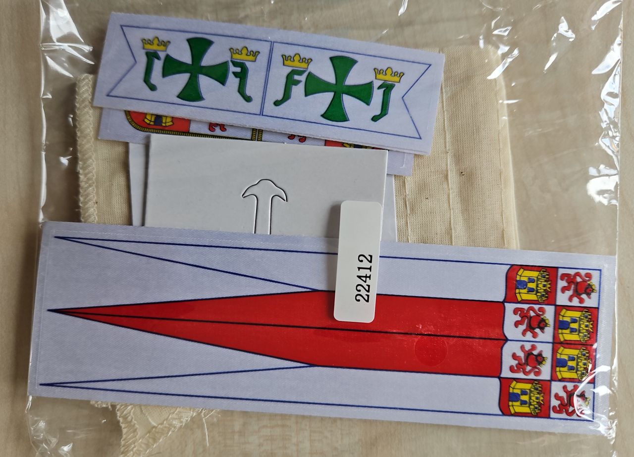 Zusätzlich können Metallfiguren in 1/65 und ein Farbset beschafft werden. Es gibt auch mehrere Sets von Profilierplatten im Angebot um das Holz nachzuformen.