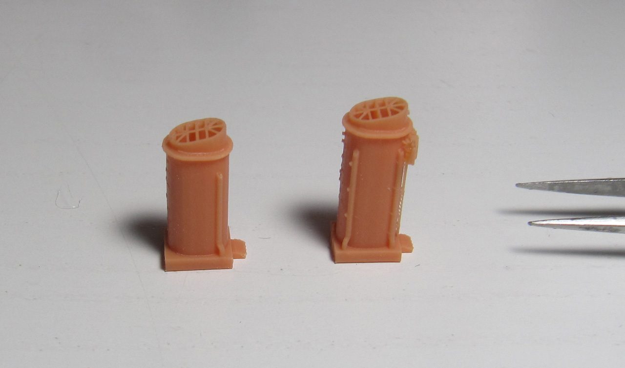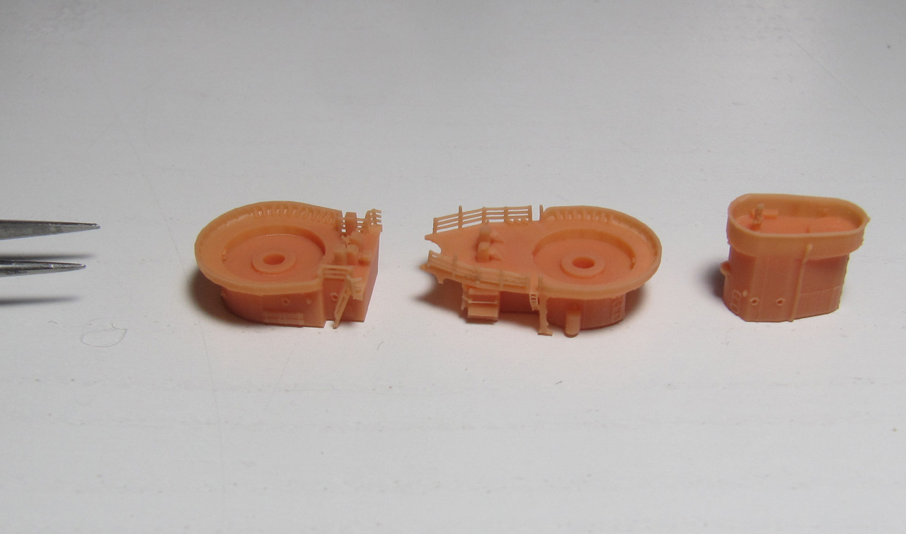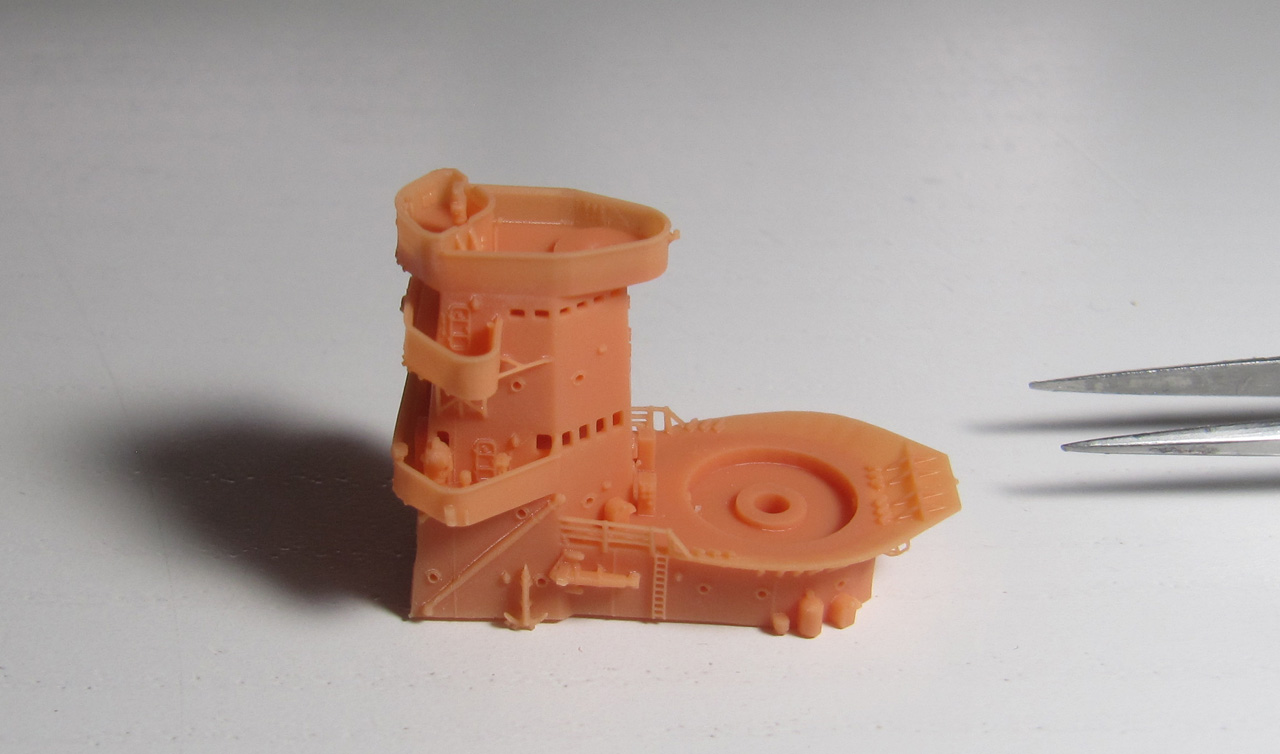 An sonstigen Aufbauten ist der massive Brückenaufbau mit der Position für das zweite 15,2-cm-Geschütz, die Positionen für das dritte und vierte Geschütz, der achtere Kommandostand und die Schornsteine enthalten. Diese Teile sind gut detailliert. Die Brückenfenster sind offen dargestellt. Nur die offene Reling ist hier wieder sehr massiv dargestellt.
