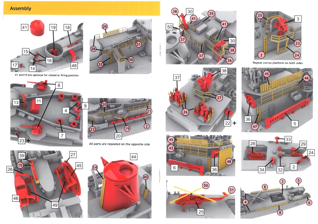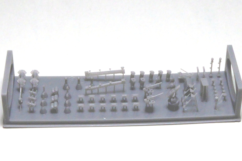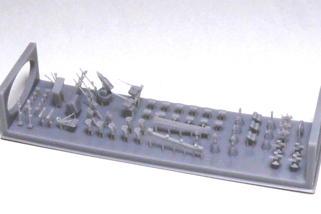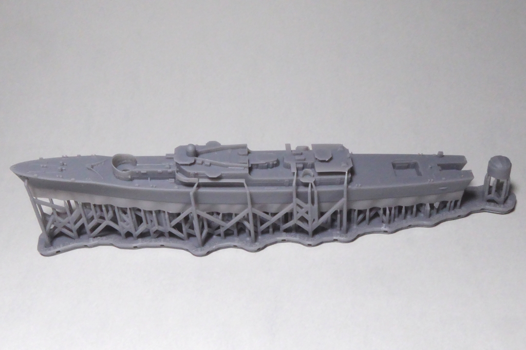 Rumpf und Aufbauten sind als ein Stück und in Schräglage gedruckt. Die Bordwand ist glatt und ohne die durch die einzelnen Lagen oft verursachten Linien. Die Aufbauten sind gut detailliert, ebenso die Decks.