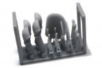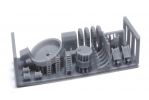 Alle anderen Resin-Bauteile sind aus einem neuen, grauen Material. Dieses ist nicht so spröde wie bisher, sondern relativ weich und elastisch. Wie bisher weist es keine „Bearbeitungsspuren“ auf.