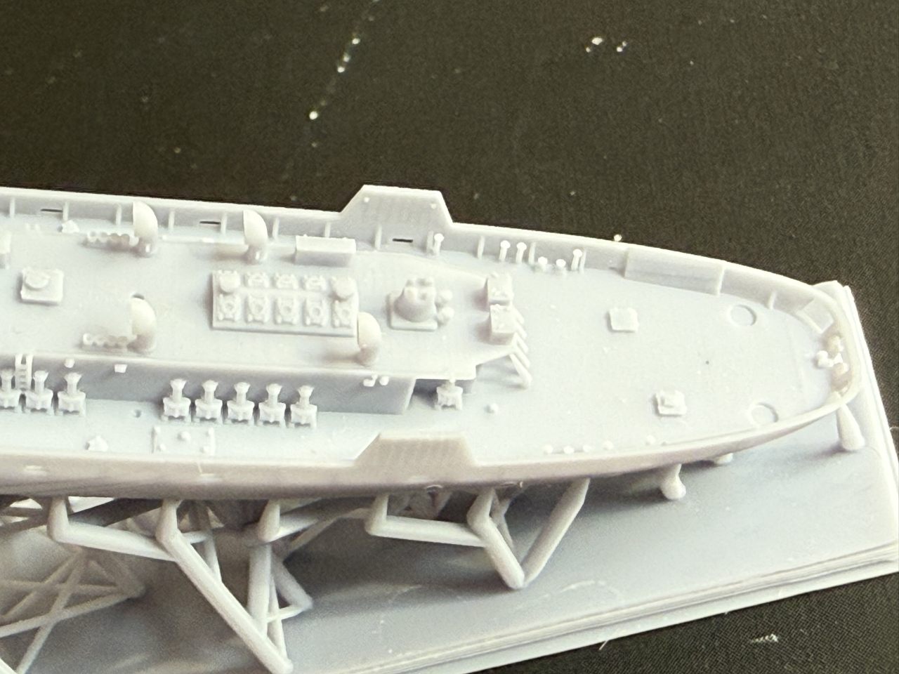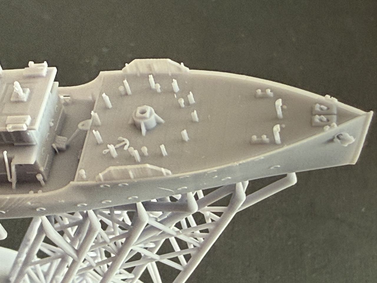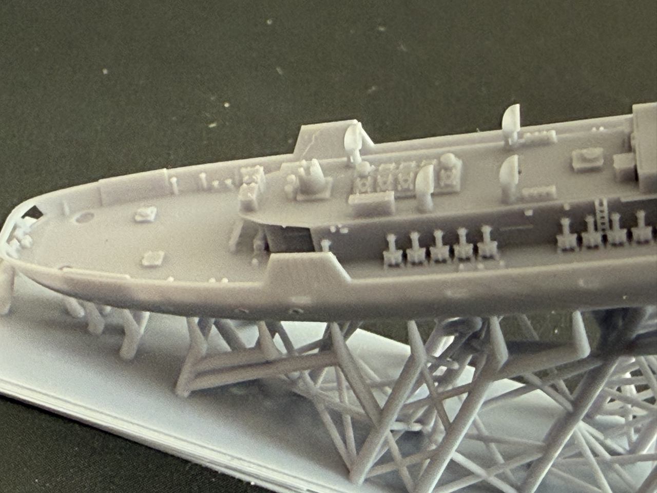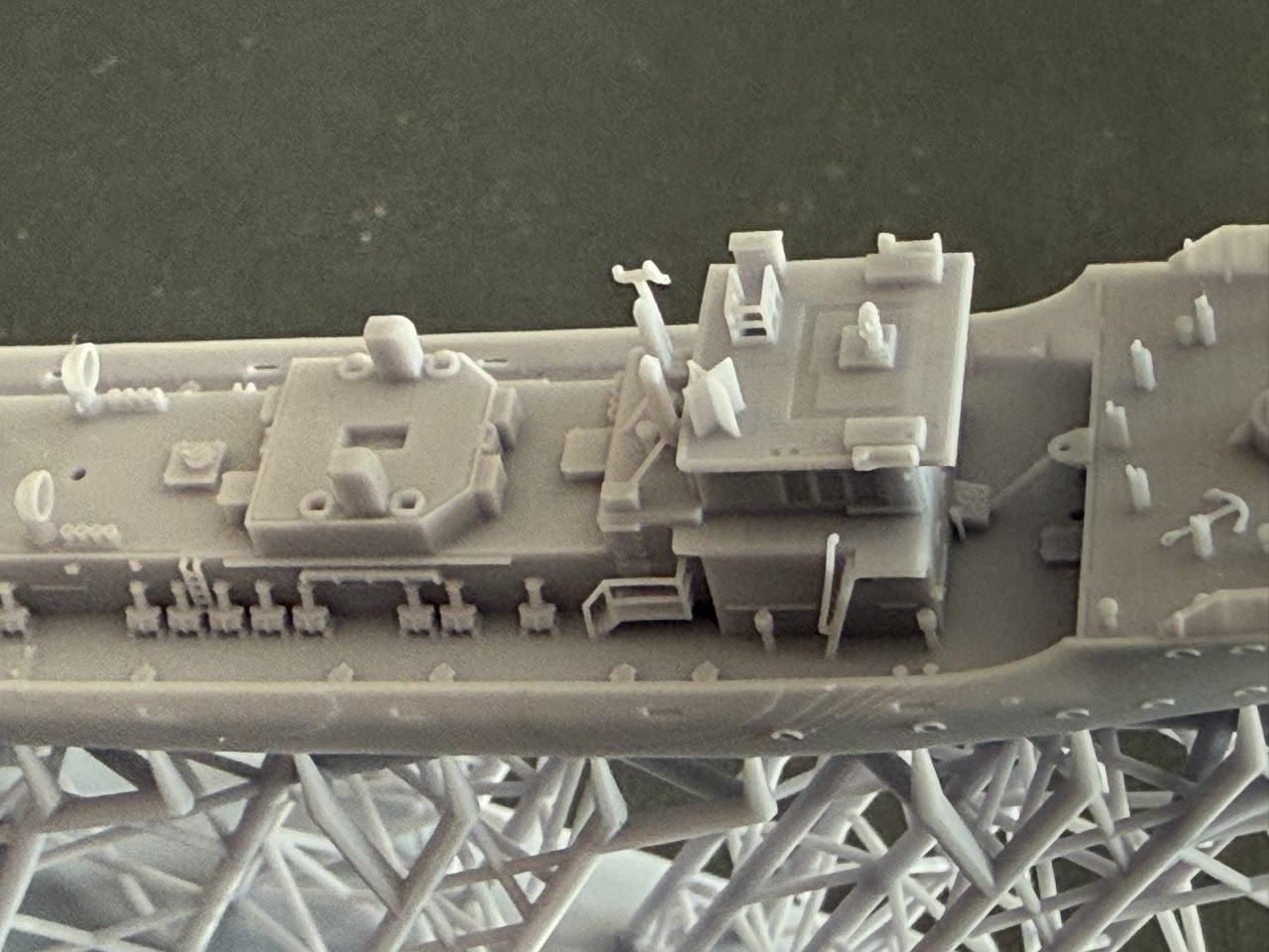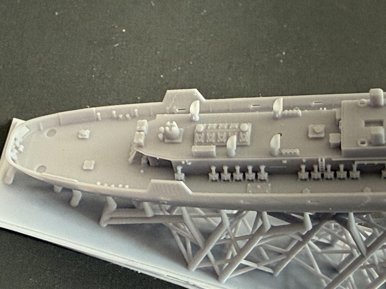 Die Qualität der Drucke ist überragend. Die Details auf dem Rumpf, der mitsamt den Supportstrukturen ausgeliefert wird, sind unglaublich fein und zum Teil sind die Relingstrukturen an Niedergängen mitgedruckt. Beide Varianten unterscheiden sich, entsprechend dem Original, in den Aufbauten. Eine Vollrumpfversion ist nicht vorgesehen, d.h. es liegt kein Unterwasserschiff bei. Die Schiffe können demnach eher im Hafen liegend oder bei ruhiger See dargestellt werden. Dynamische Szenen, bei stürmischer See, sind somit nur durch eine Ergänzung des Unterwasserschiffes dargestellt werden. Hier ist Eigeninitiative gefragt. Aber vielleicht bietet Black Cat zukünftig auch Vollrumpfversionen, wie bei den entsprechenden Modellen im Maßstab 1/350, an.