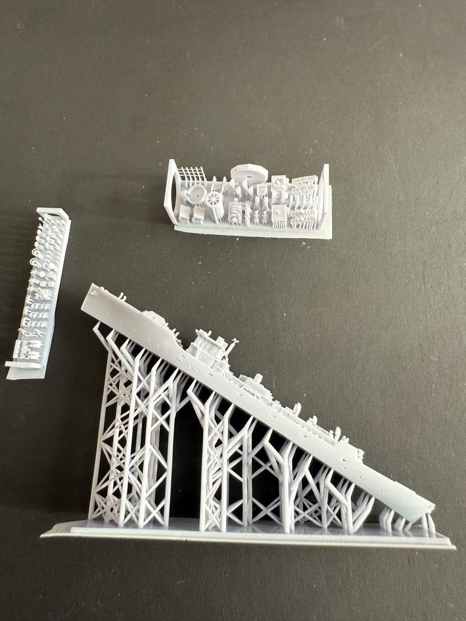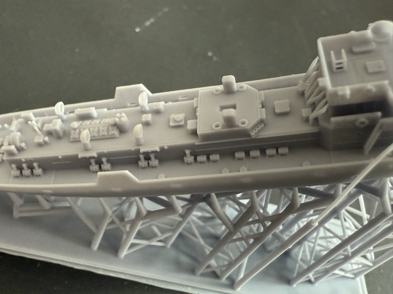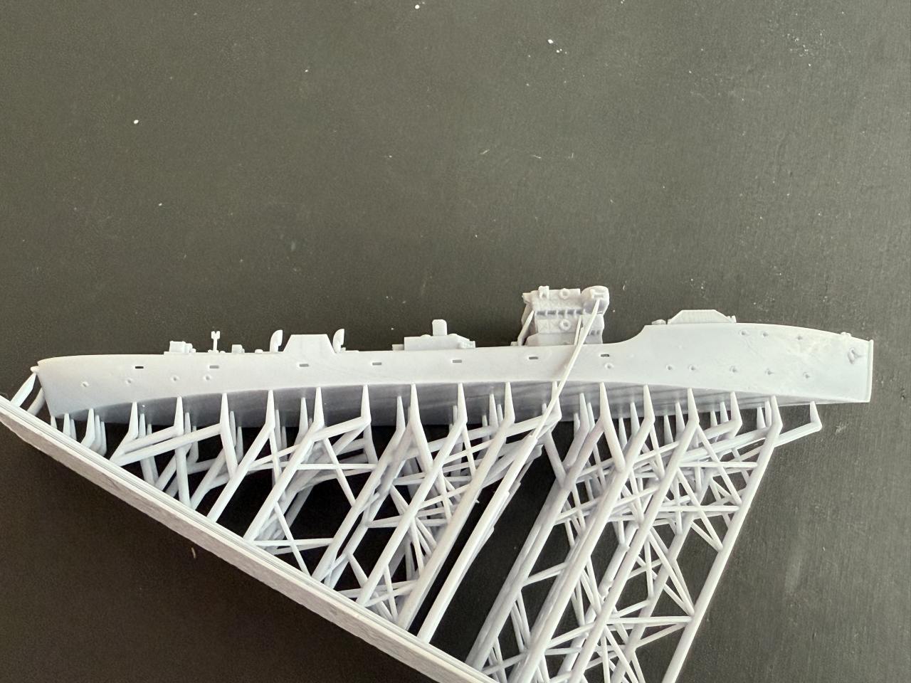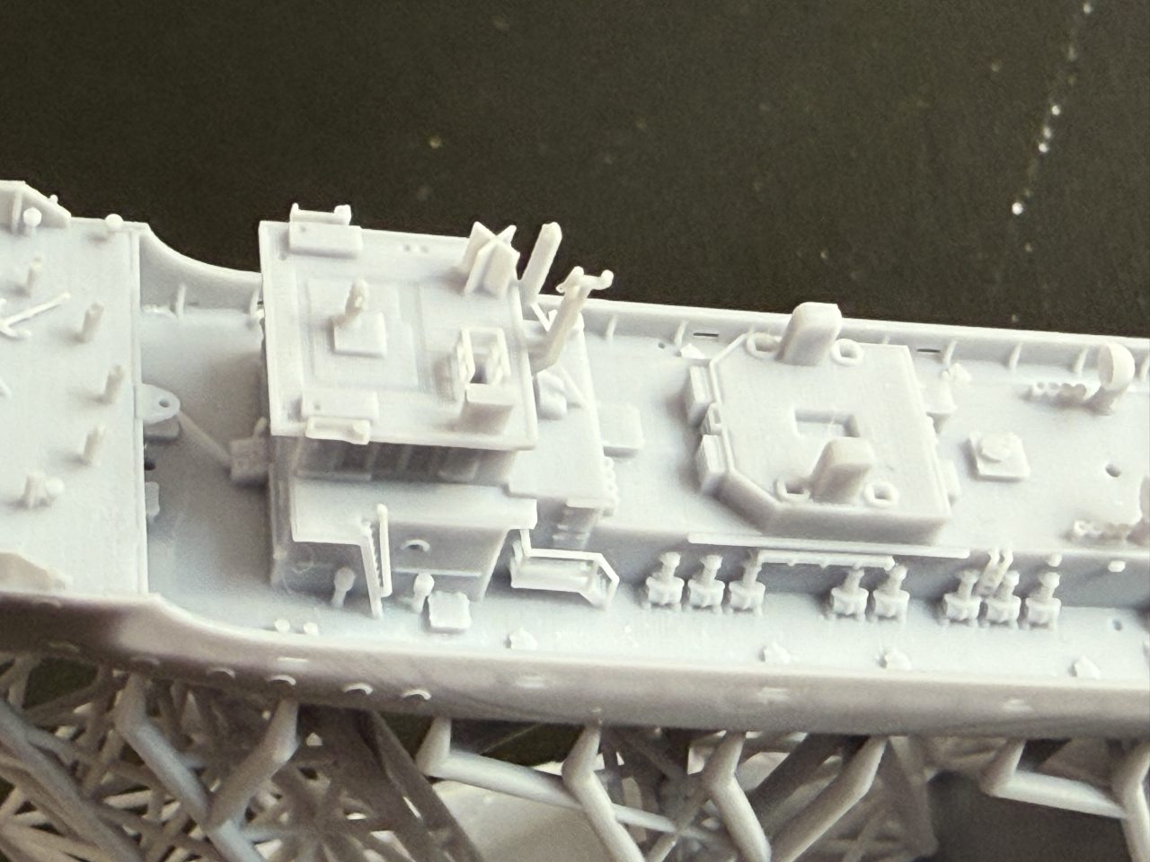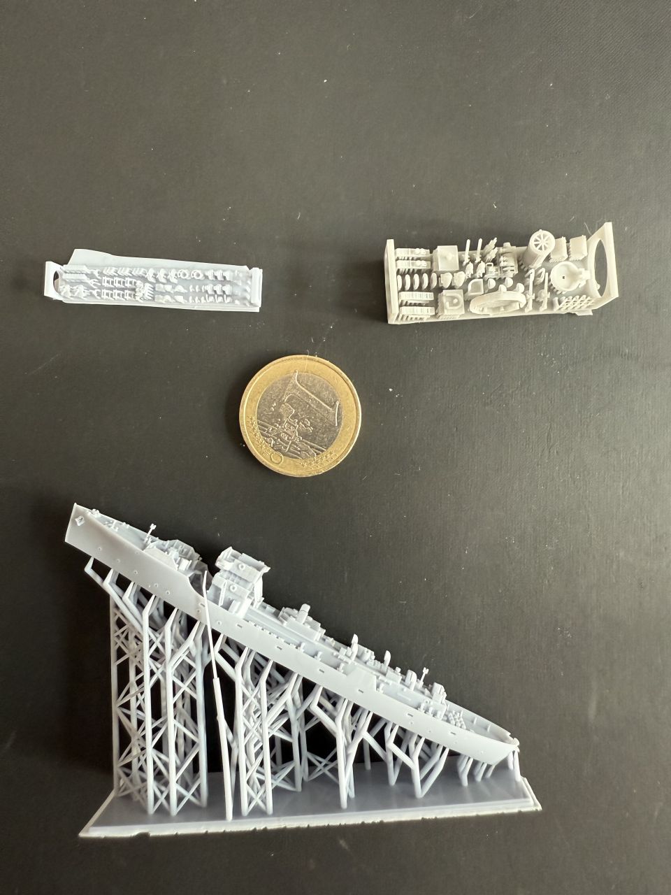 Die Qualität der Drucke ist überragend. Die Details auf dem Rumpf, der mitsamt den Supportstrukturen ausgeliefert wird, sind unglaublich fein und zum Teil sind die Relingstrukturen an Niedergängen mitgedruckt. Beide Varianten unterscheiden sich, entsprechend dem Original, in den Aufbauten. Eine Vollrumpfversion ist nicht vorgesehen, d.h. es liegt kein Unterwasserschiff bei. Die Schiffe können demnach eher im Hafen liegend oder bei ruhiger See dargestellt werden. Dynamische Szenen, bei stürmischer See, sind somit nur durch eine Ergänzung des Unterwasserschiffes dargestellt werden. Hier ist Eigeninitiative gefragt. Aber vielleicht bietet Black Cat zukünftig auch Vollrumpfversionen, wie bei den entsprechenden Modellen im Maßstab 1/350, an.