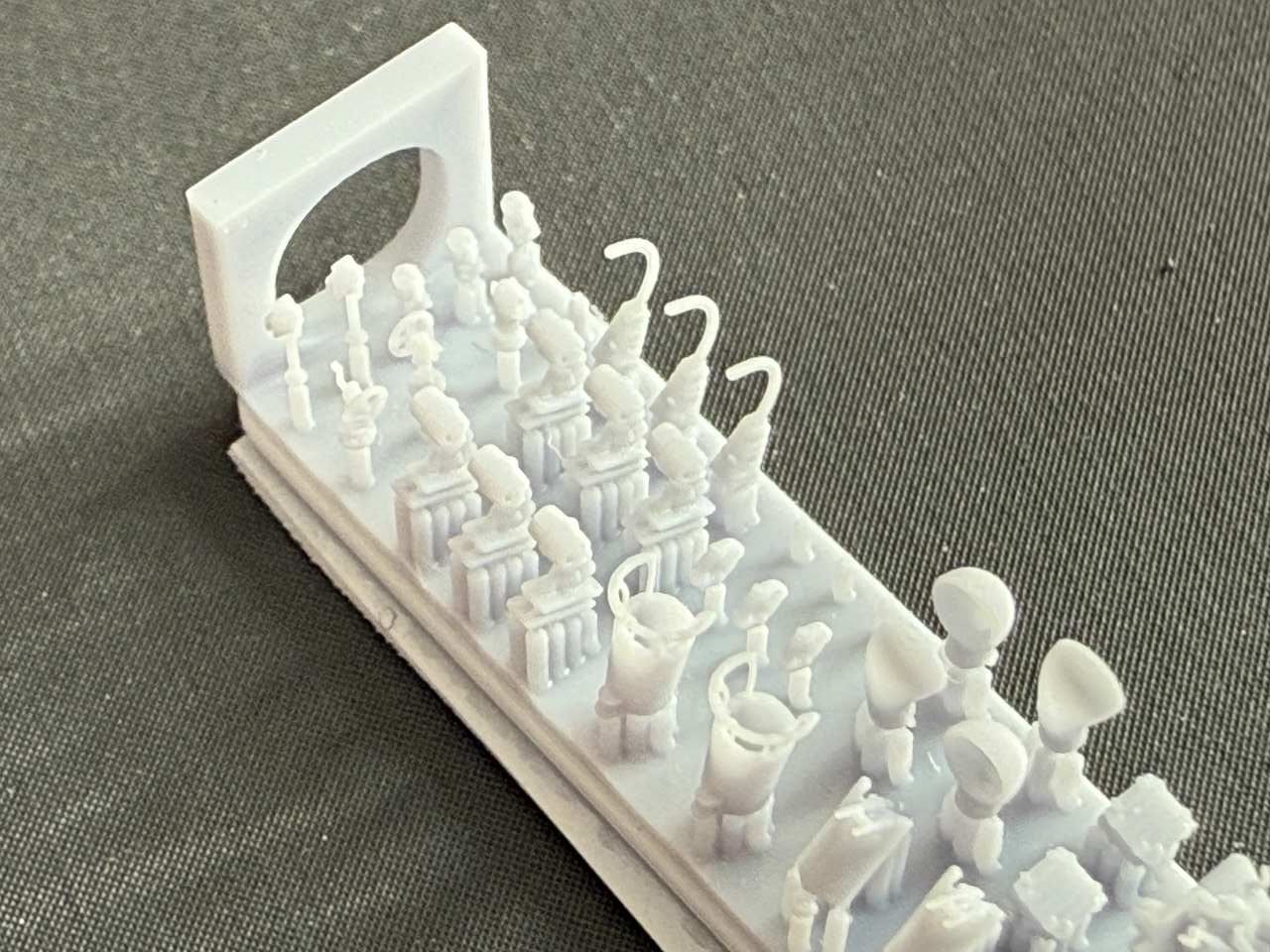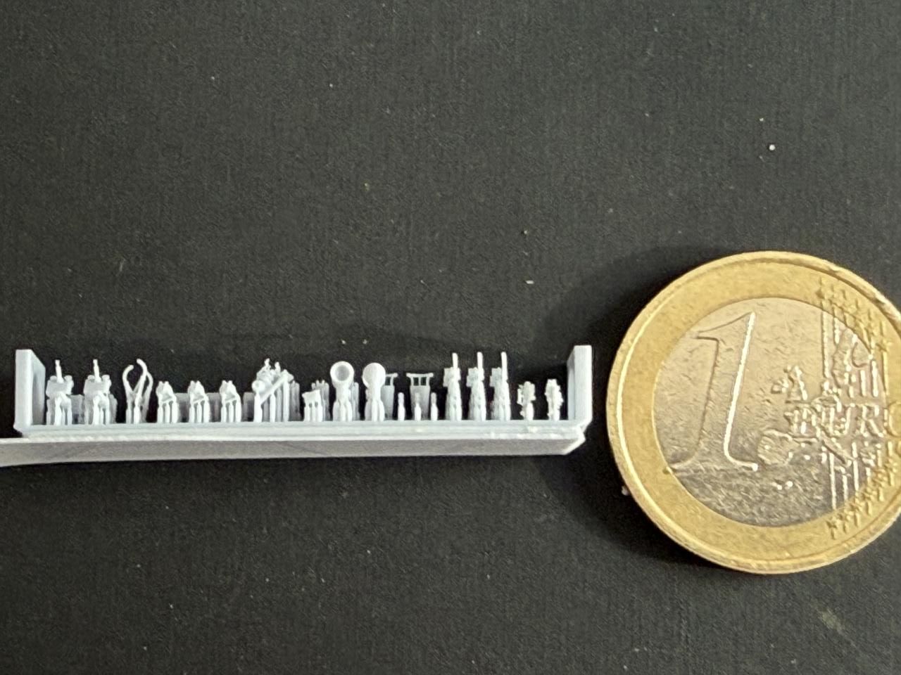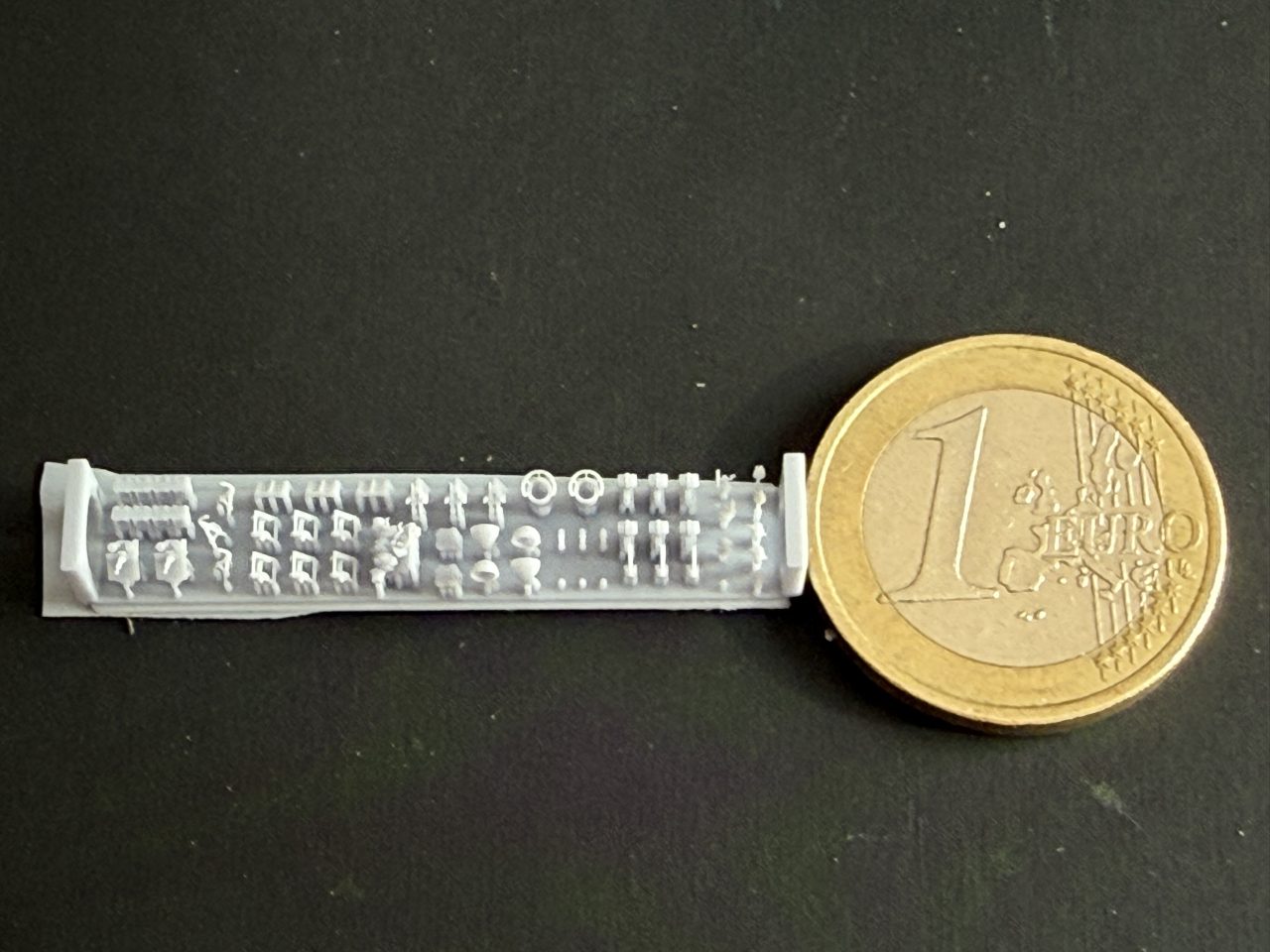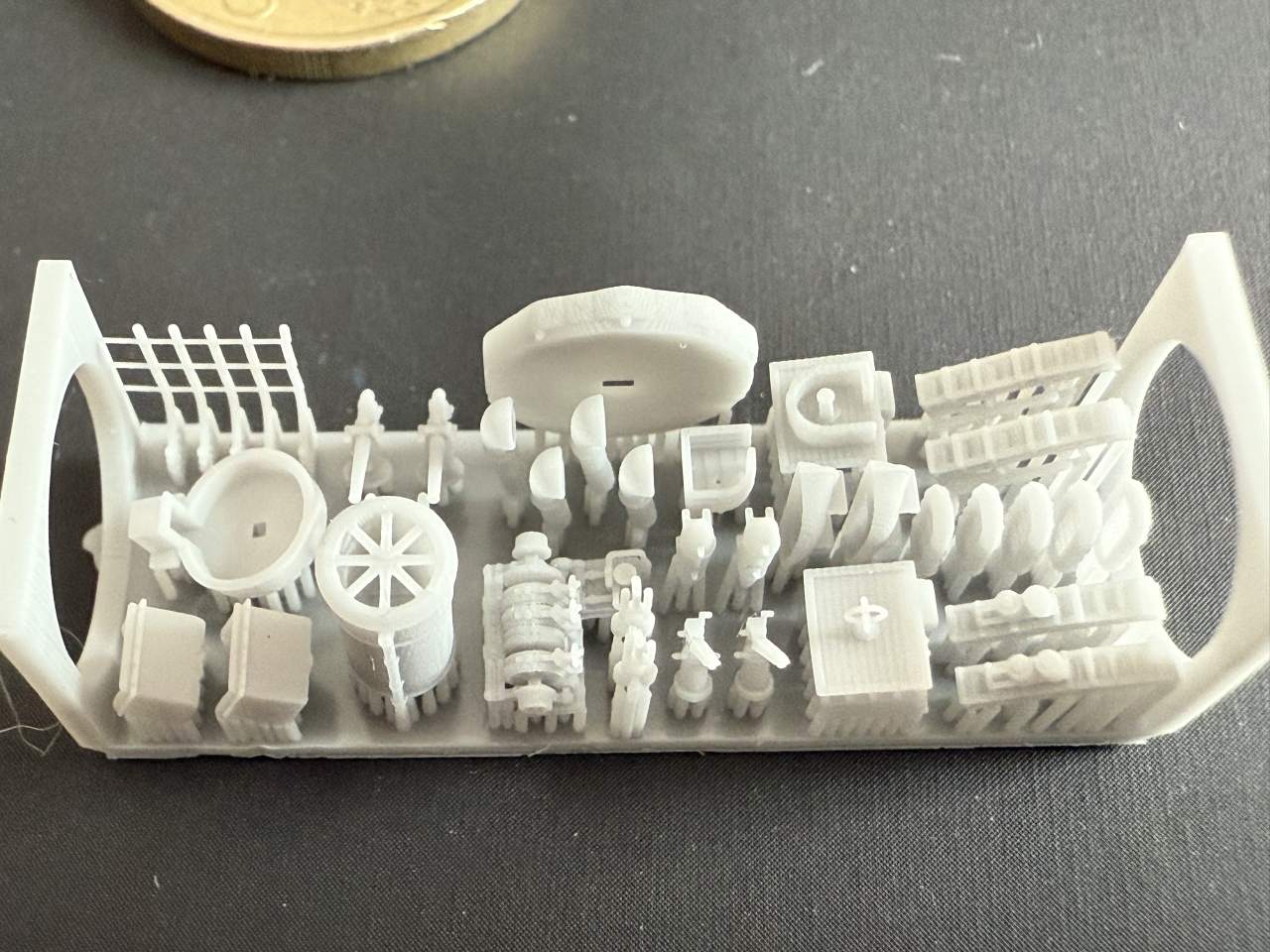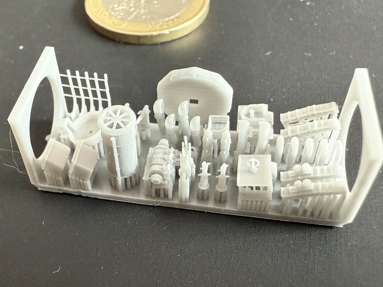 Die beiden Druckobjekte mit den Kleinteilen sind dicht bestückt und bieten unglaublich fein gedruckte Teile an. Hier ist ein umsichtiges Lösen und Verarbeiten der Teile unbedingt geboten.