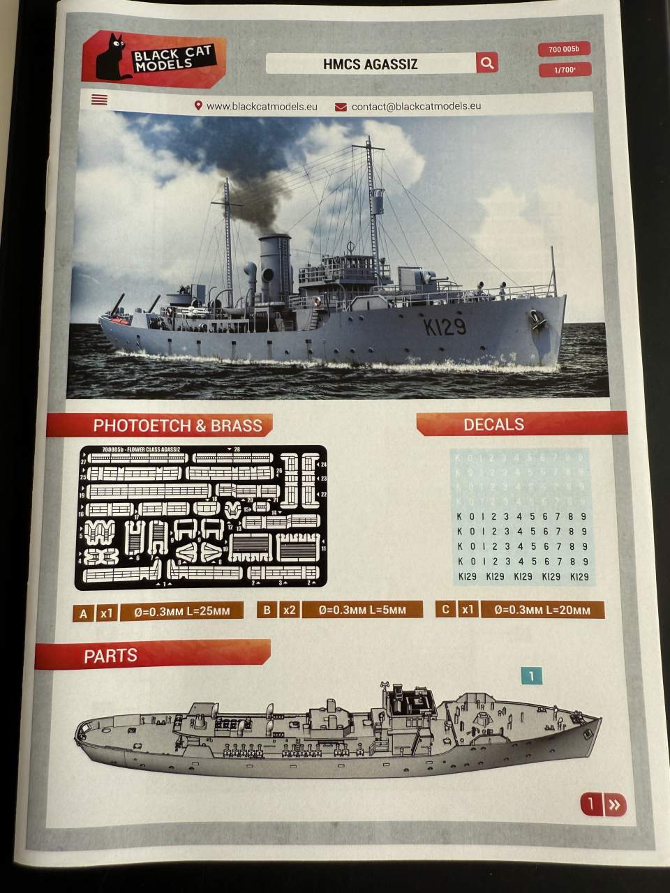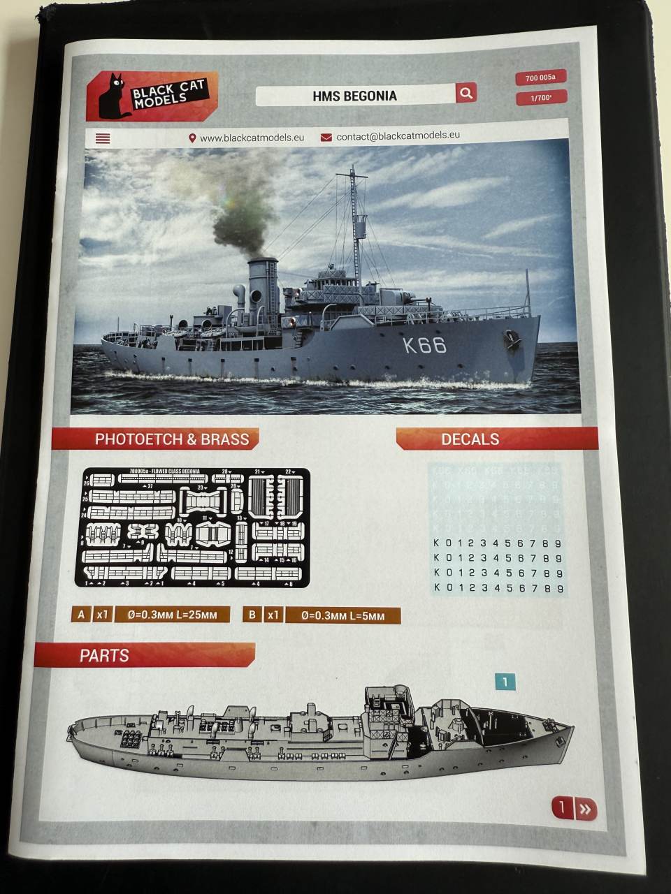 Der französische Hersteller Black Cat Models hat Ende August zwei Varianten der Korvetten der Flower-Klasse mit kurzer Back im Maßstab 1/700 herausgebracht. Dies sind jeweils eine kanadische Variante (HMCS Agassiz) und eine britische Variante (HMS Begonia).