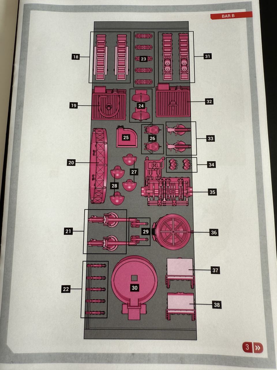 Die beiden nächsten Seiten geben einen Überblick über die 3D-gedruckten Kleinteile und erklären das Farbsystem bei der Verwendung der Teile