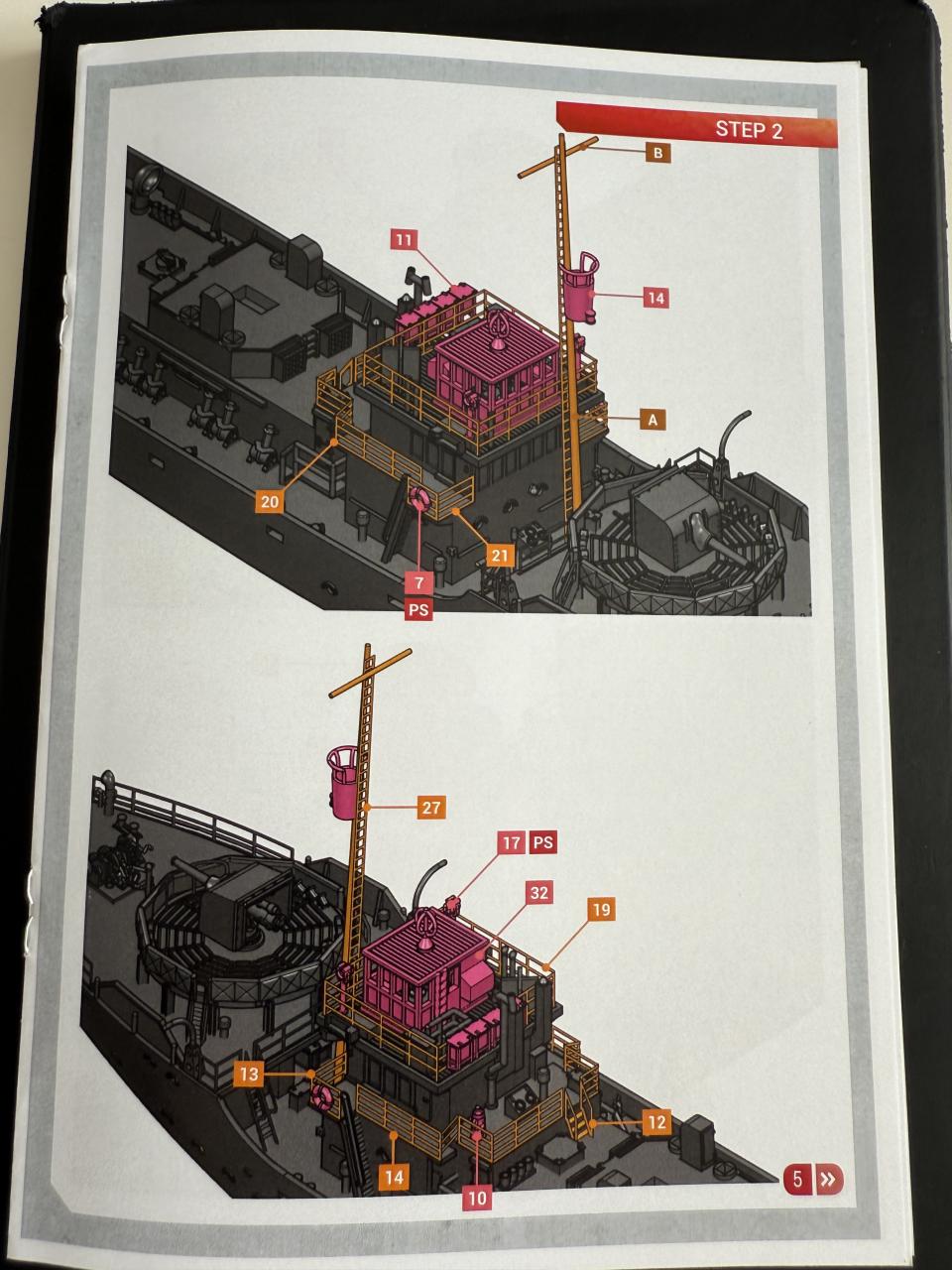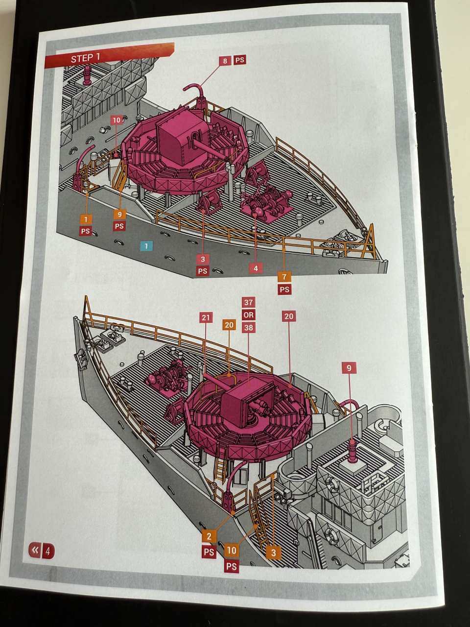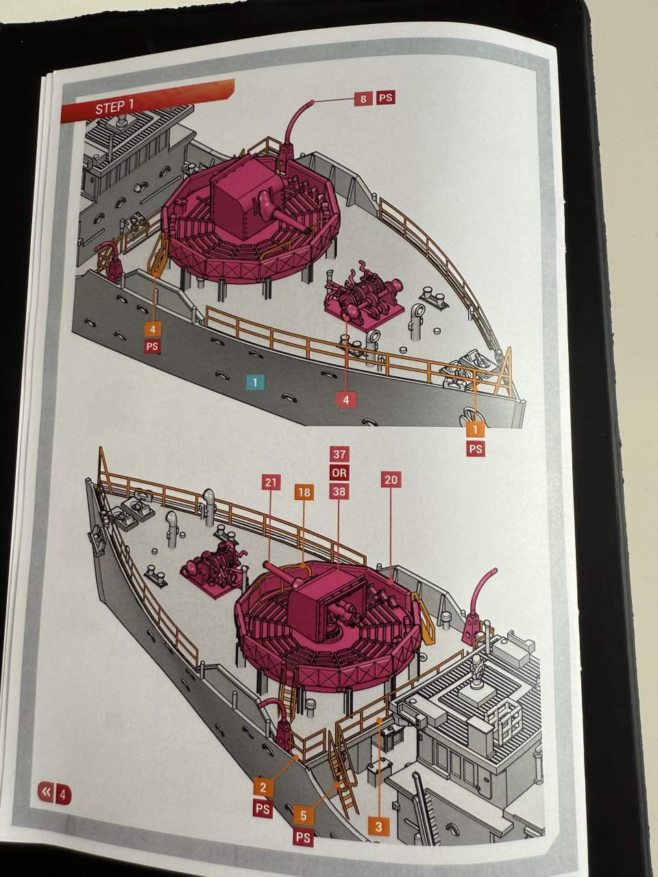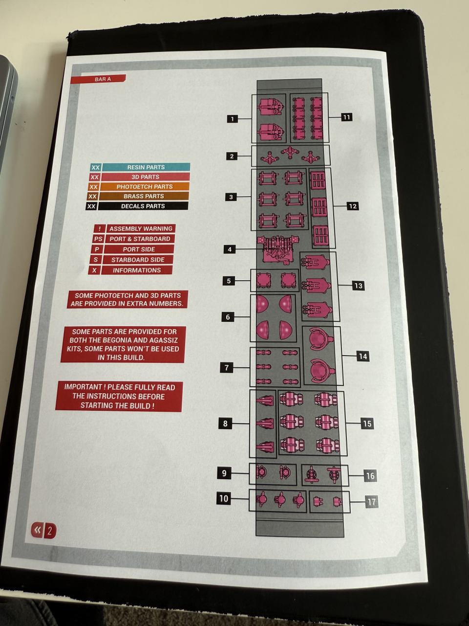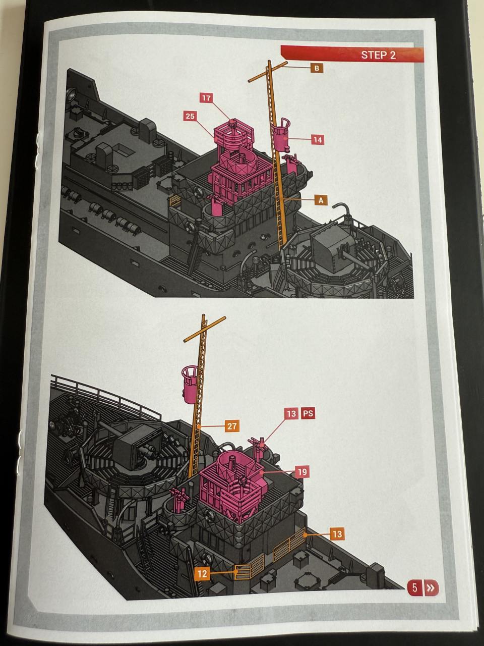 Die durchgehend farbige Bauanleitung ist im DIN-A5-Format als Heftform gehalten. Auf dem Deckblatt finden sich zunächst ein Bild der Korvetten und eine Übersicht über den Schachtelinhalt.