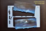 Zum Schluss möchte ich noch eine besondere Zutat zum Bausatzes erwähnen, das 3D-Puzzle-Diorama. Zuerst dachte ich an eines der üblichen Puzzlebilder mit einer dramatischen Abbildung des sinkenden Schiffes als Beilage. Hier aber wird die Puzzletechnik für den Zusammenbau einer dreidimensionalen Dioramaplattform mit dem ominösen Eisberg drauf verwendet, in die das fertige Modell eingesteckt werden kann. Also nichts als konsequent, wenn hier ein weiteres Stecksystem zur Anwendung kommt. Die einzelnen Teile lassen sich problemlos und sauber herausbrechen und passen nahtlos zueinander. Einzig der Eisberg braucht etwas an Fingerspitzengefühl, bis alle Laschen eingesteckt sind.
