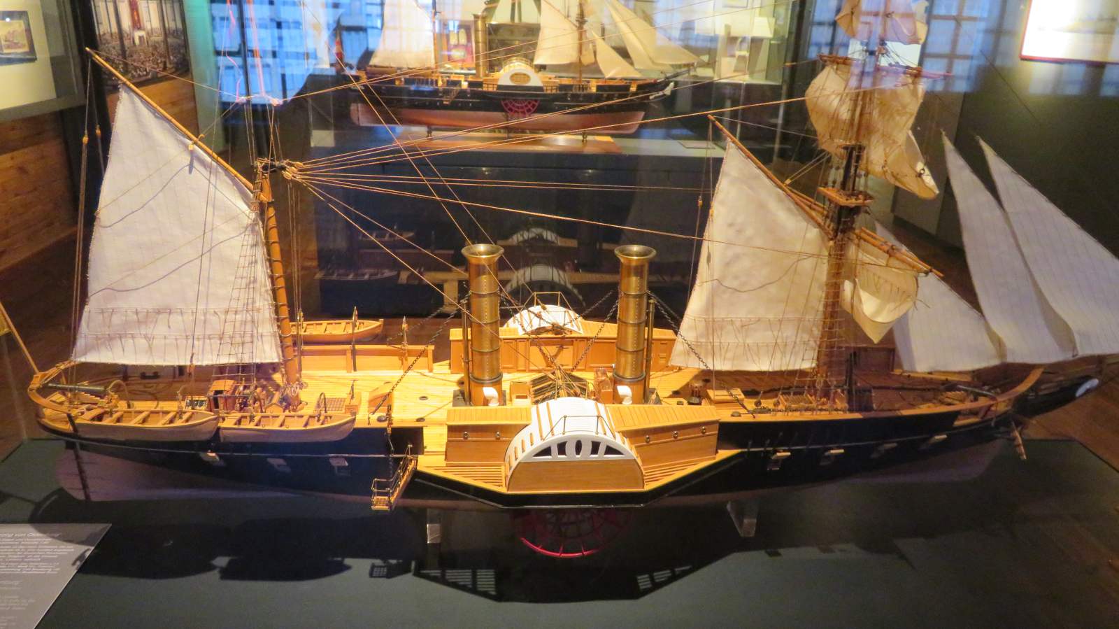 - Modelle von Marineschiffe des 19. Jahrhunderts mit Dampf- und Segelantrieb