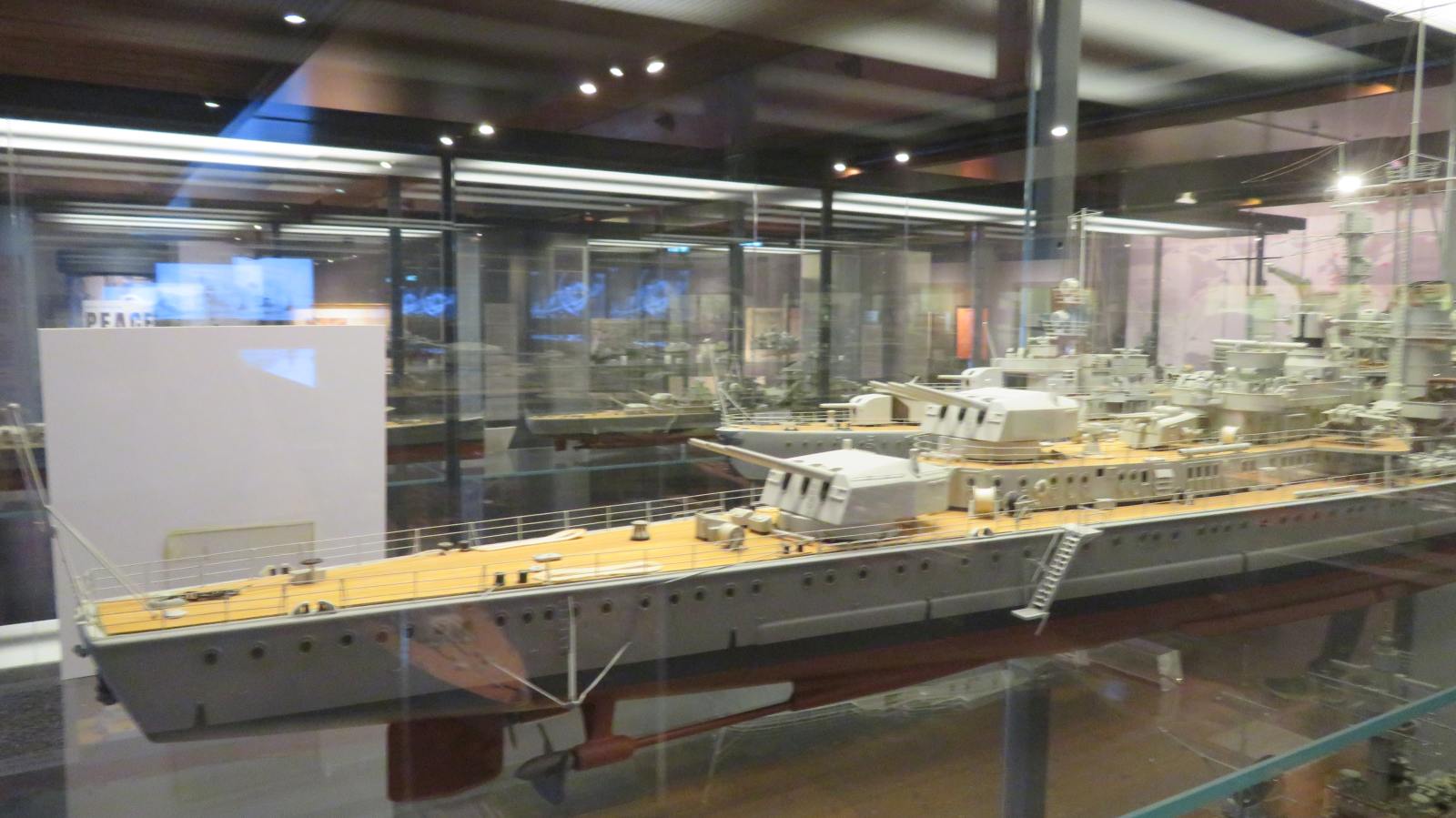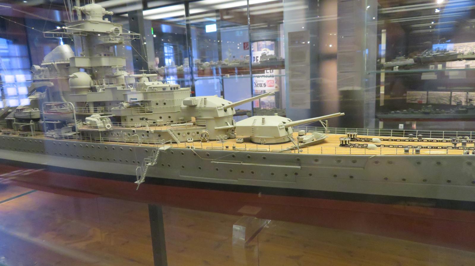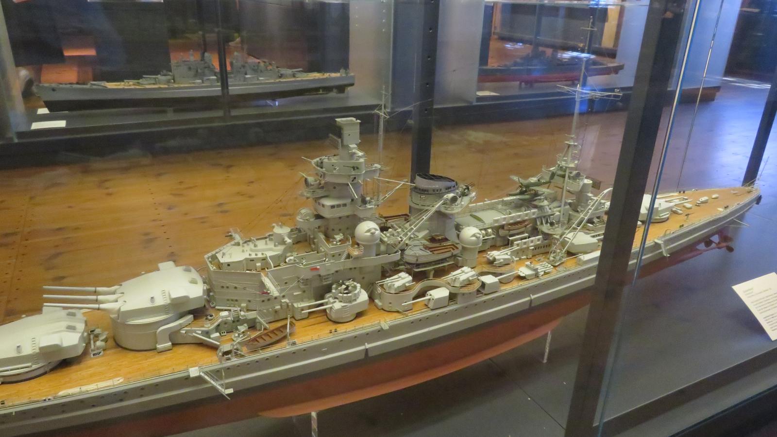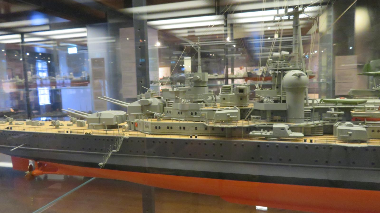 Hier weitere Fotos von Modellen von Marineschiffen, die im Internationale Maritime Museum ("Tamm-Museum") in Hamburg im August 2025 zu sehen waren: