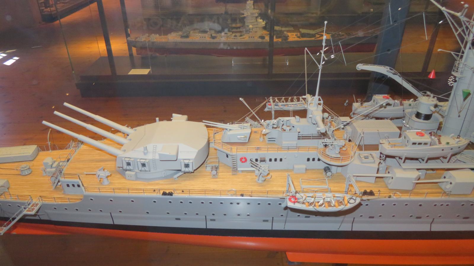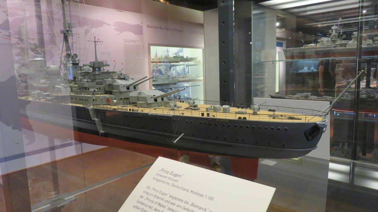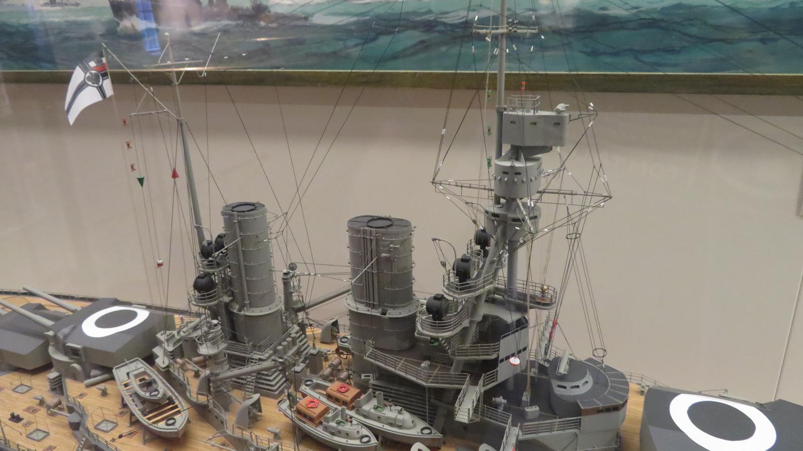 Hier weitere Fotos von Modellen von Marineschiffen, die im Internationale Maritime Museum ("Tamm-Museum") in Hamburg im August 2025 zu sehen waren: