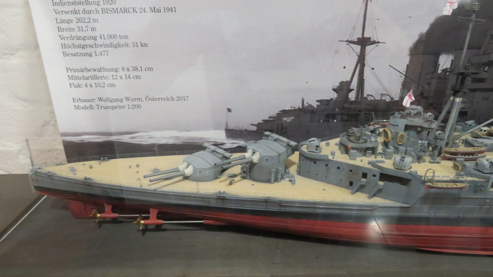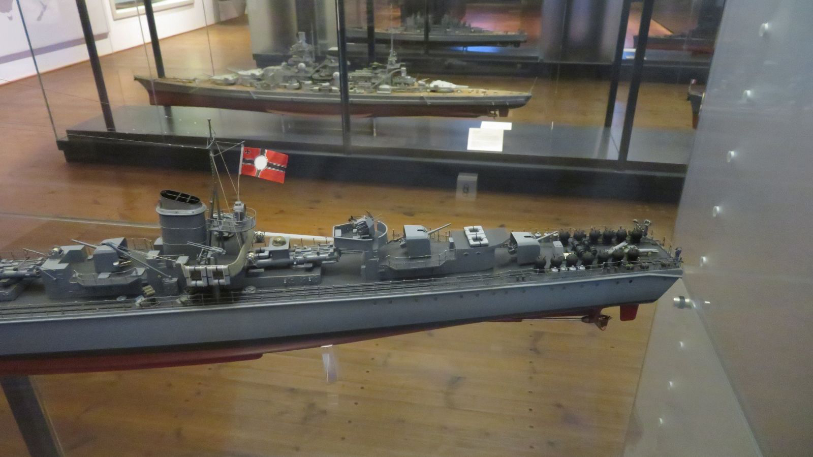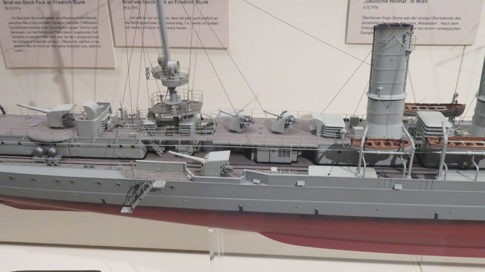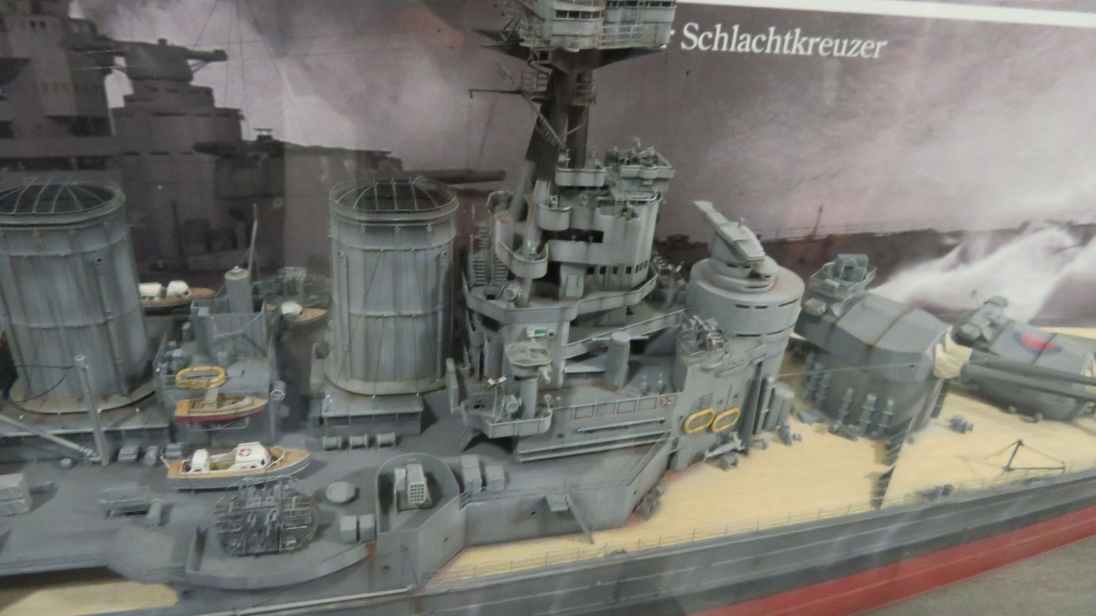 Hier weitere Fotos von Modellen von Marineschiffen, die im Internationale Maritime Museum ("Tamm-Museum") in Hamburg im August 2025 zu sehen waren: