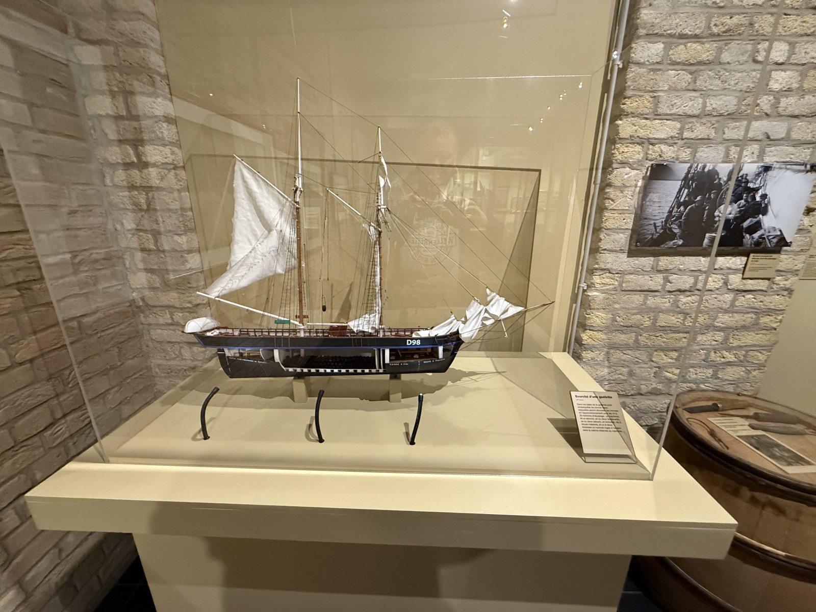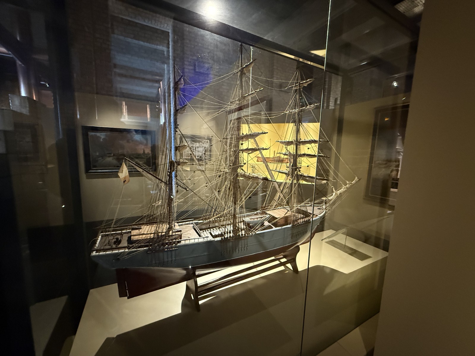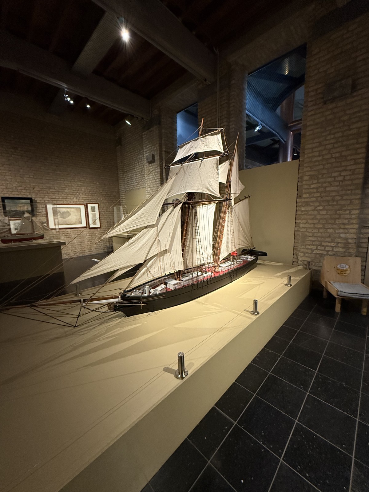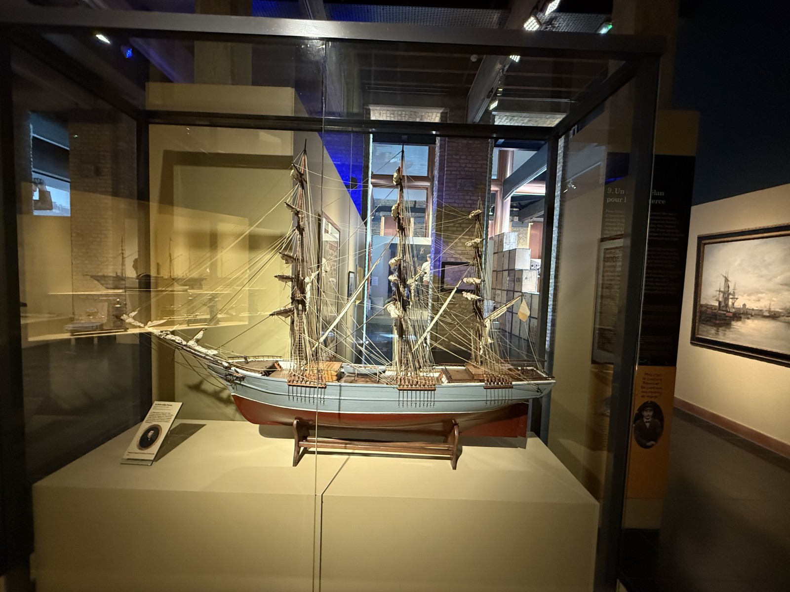 Vor dem Eingang des Museums, liegen einige Museumsschiffe am Kai. Dies sind das Vollschiff Duchesse Anne (die 1901 in Geestemünde gebaute Großherzogin Elisabeth, siehe Fotogalerie), das Feuerschiff Sandettié (1949), der Schlepper Entreprenant (1965), das Lotsenboot Pilotine n° 1 (1965) und das Binnenschiff Guilde. Aus Zeitgründen konnte ich die Schiffe leider nicht besuchen. In dem Museum finden sich über drei Stockwerke verteilt viele Modelle von Schiffen aus der Zeit des 19.-21. Jahrhunderts. Hierbei konzentriert sich das Museum im Wesentlichen auf die Handelsschifffahrt und den Fischfang. Begleitet werden die Modelle von vielen interessanten maritimen Schaustücken und Hinweistafeln.