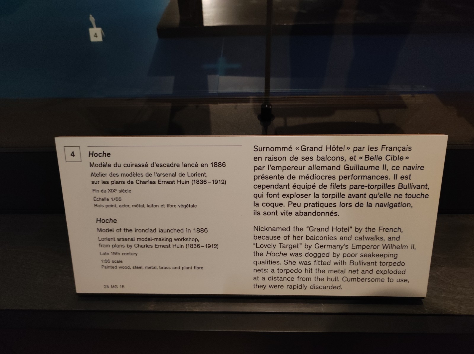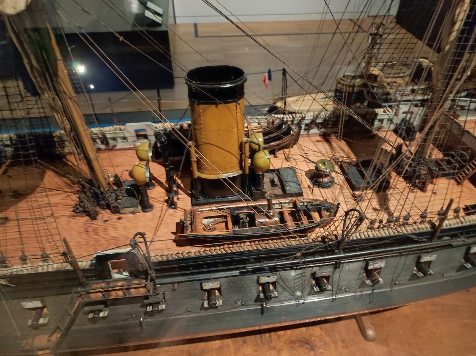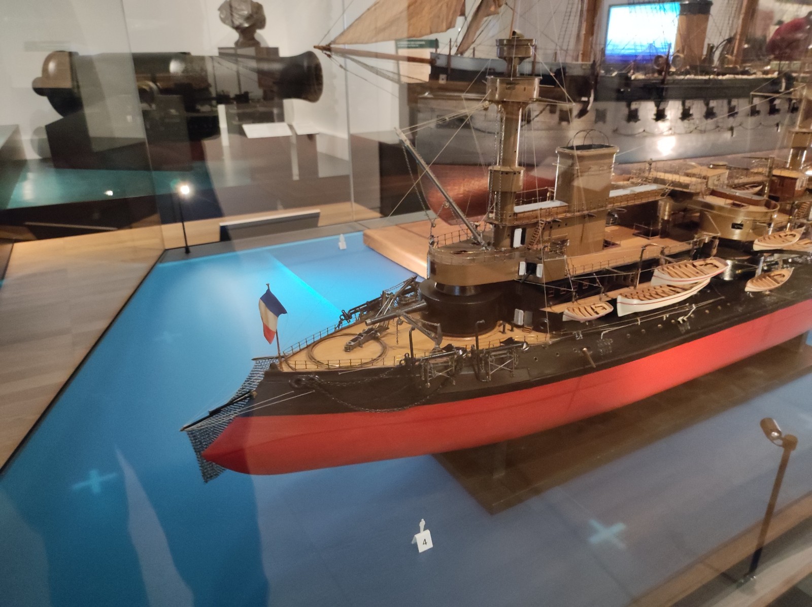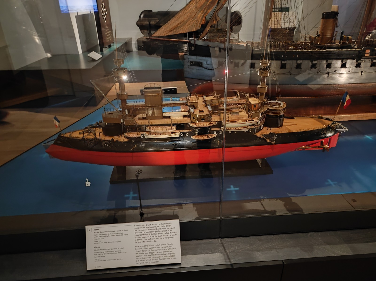 Im Musée national de la Marine de Paris gab es früher, zumindest meiner Erinnerung nach, mehr Modelle von Schiffen aus dem 19. und frühen 20. Jahrhundert zu sehen. Heute ist diese Abteilung deutlich geschrumpft. Zu sehen gibt es u.a. den Aviso Sphinx, das Schlachtschiff Hoche, die Panzerfregatte La Gloire, das U-Boot René Audry (ex U 119) und den Panzerkreuzer Victor Hugo.