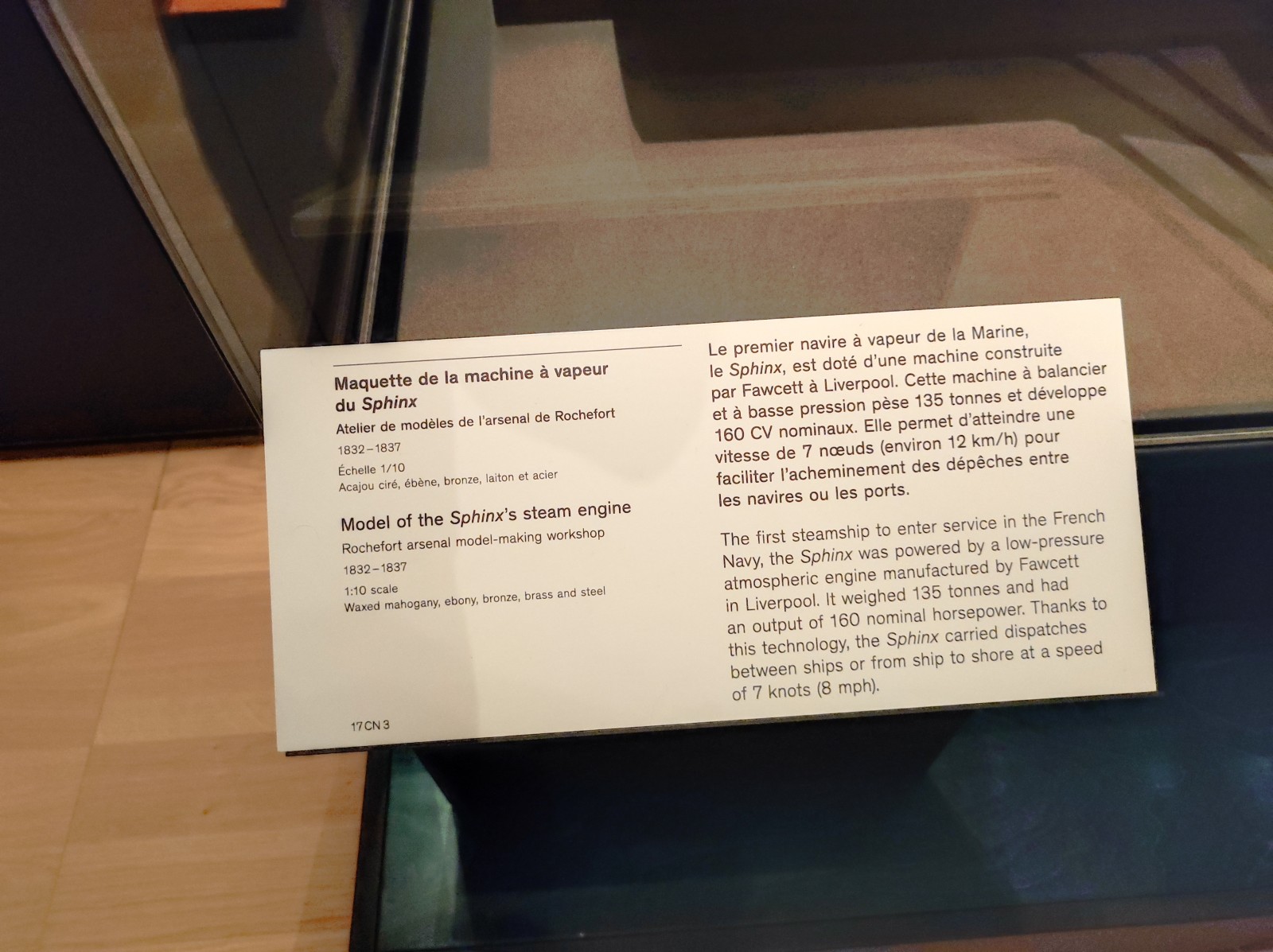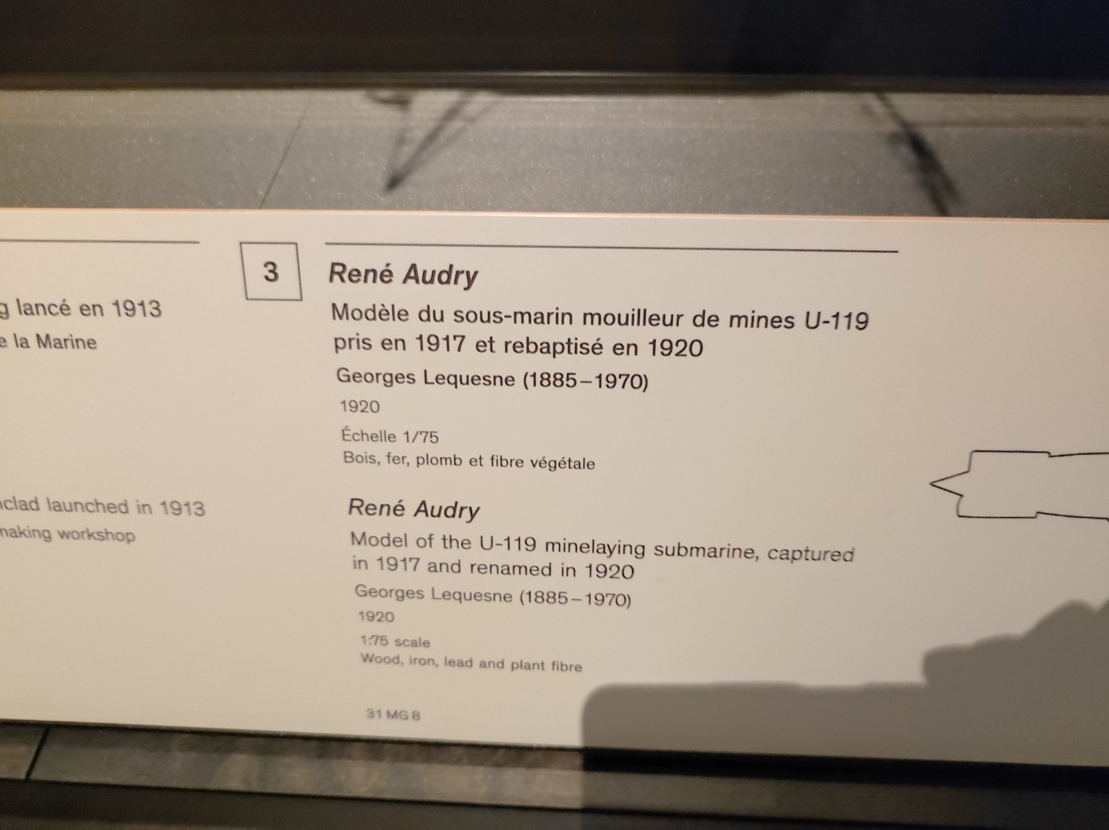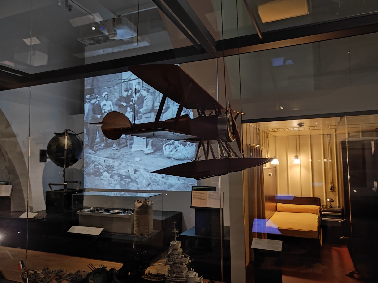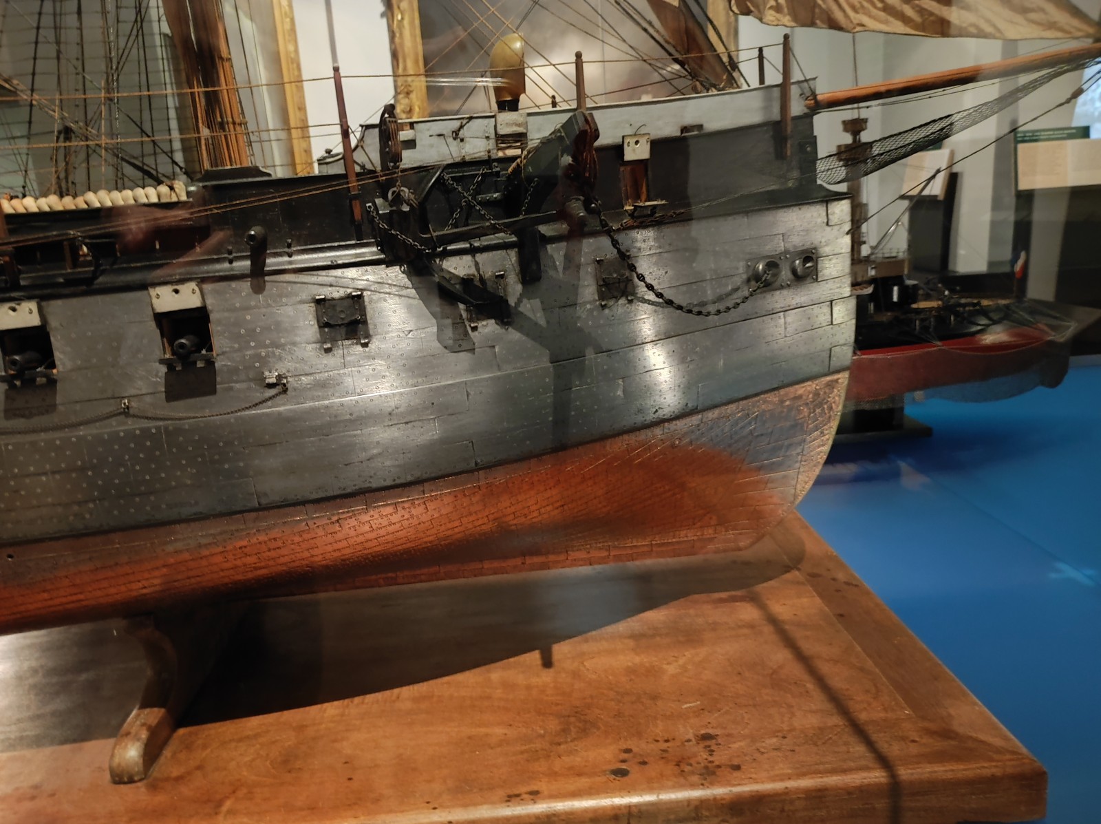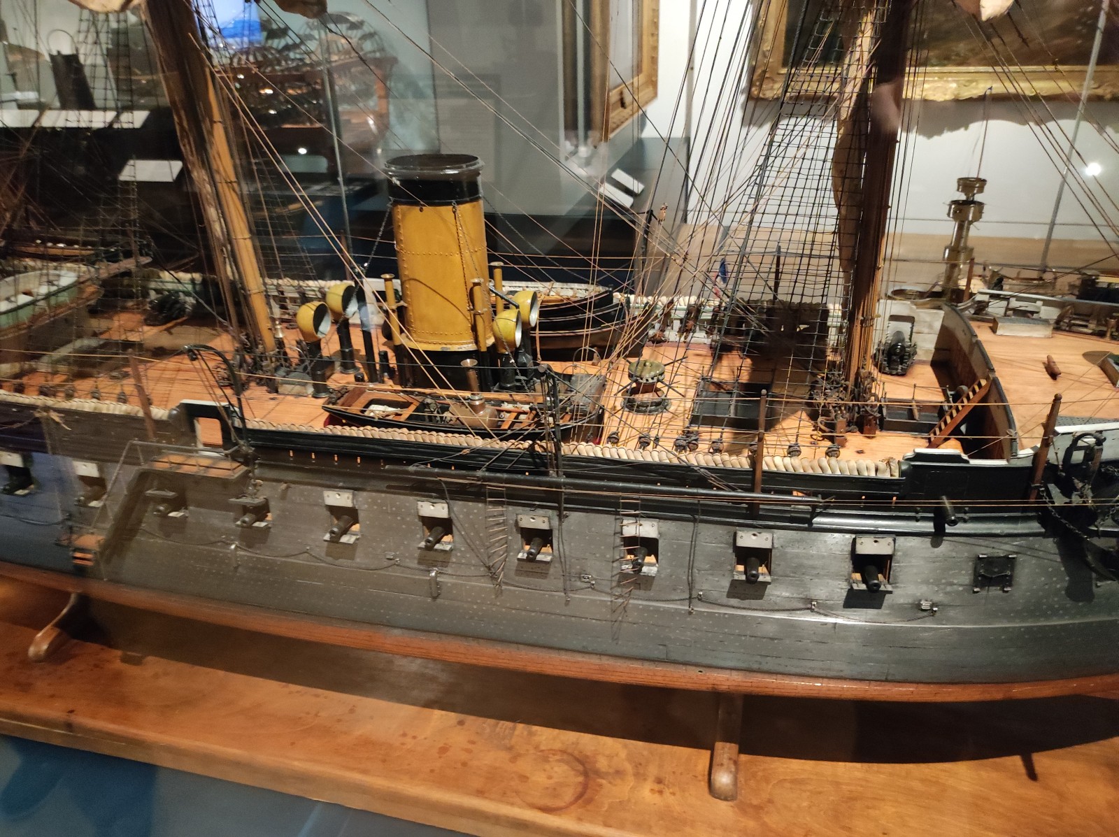Im Musée national de la Marine de Paris gab es früher, zumindest meiner Erinnerung nach, mehr Modelle von Schiffen aus dem 19. und frühen 20. Jahrhundert zu sehen. Heute ist diese Abteilung deutlich geschrumpft. Zu sehen gibt es u.a. den Aviso Sphinx, das Schlachtschiff Hoche, die Panzerfregatte La Gloire, das U-Boot René Audry (ex U 119) und den Panzerkreuzer Victor Hugo.