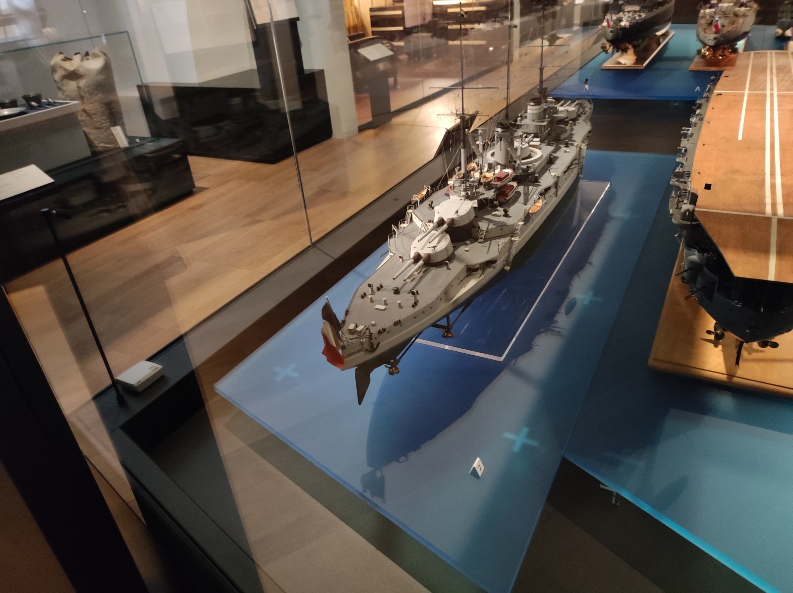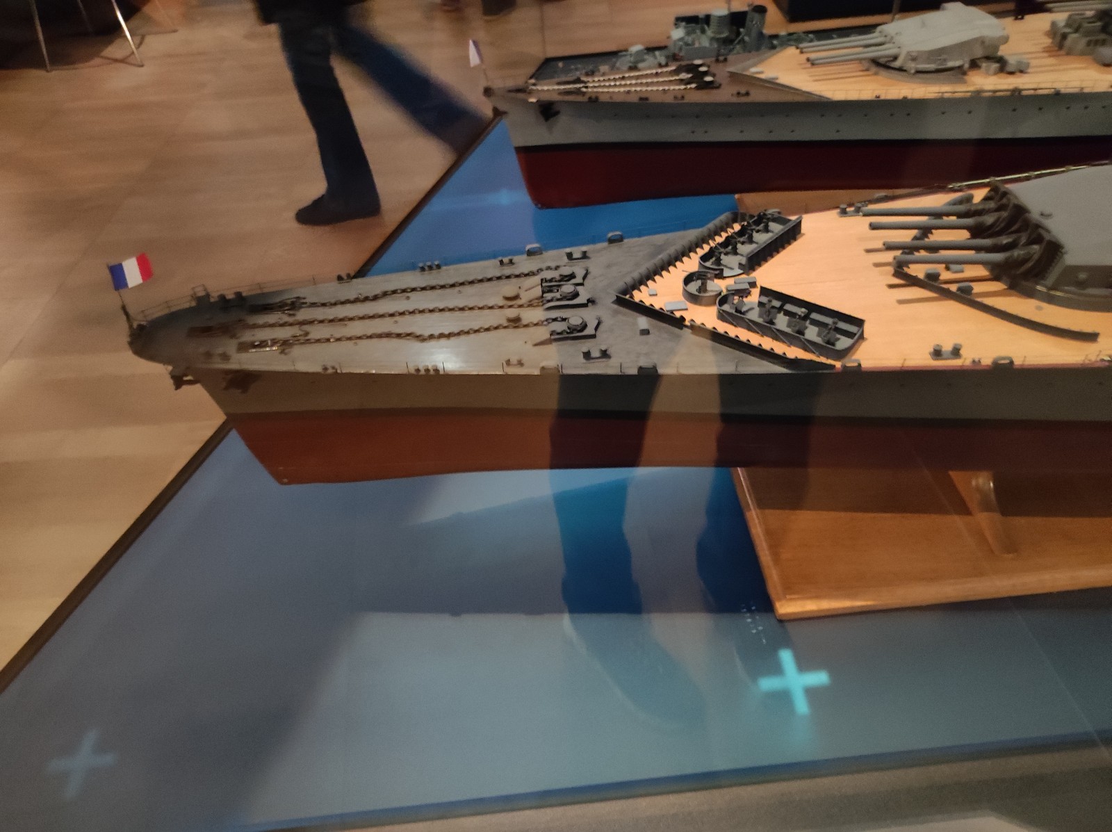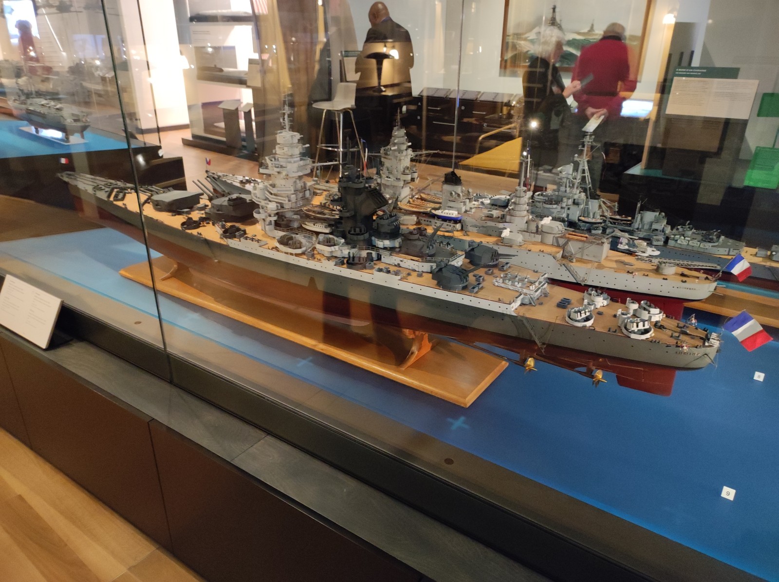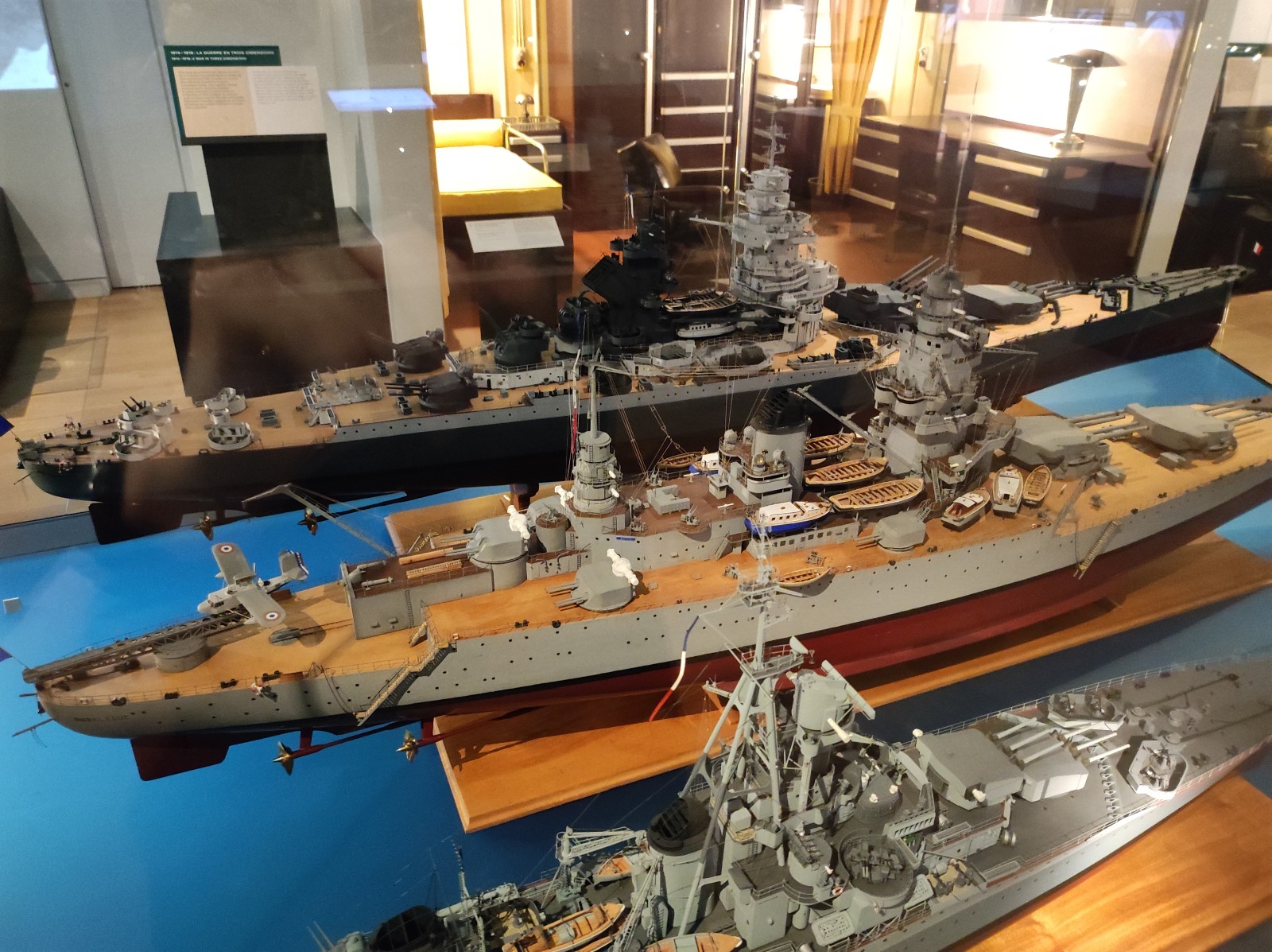 Weiter geht es mit Modellen im Musée national de la Marine de Paris aus der Zeit des Zweiten Weltkriegs, darunter der Flugzeugträger Béarn, der Leichter Kreuzer Georges Leygues, die Korvette Aconit sowie die Schlachtschiffe Lorraine, Dunkerque und Richelieu.