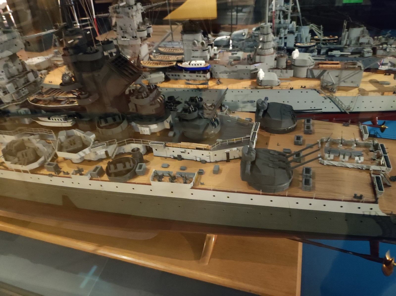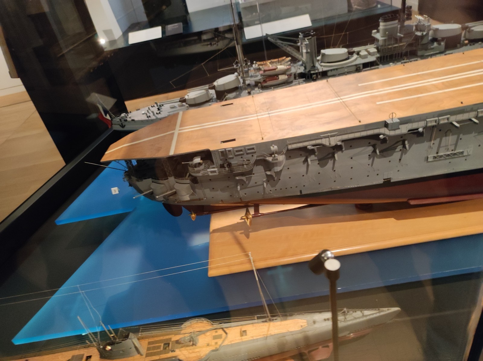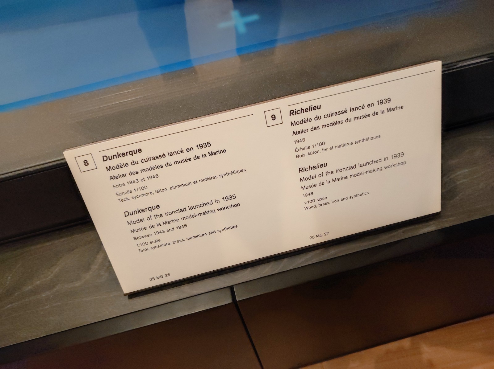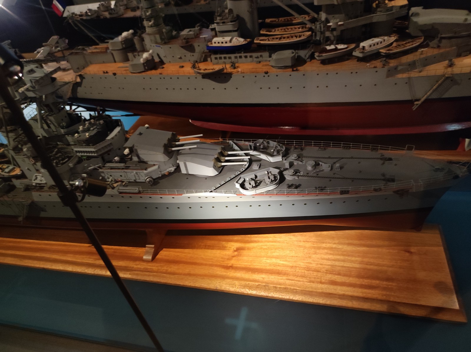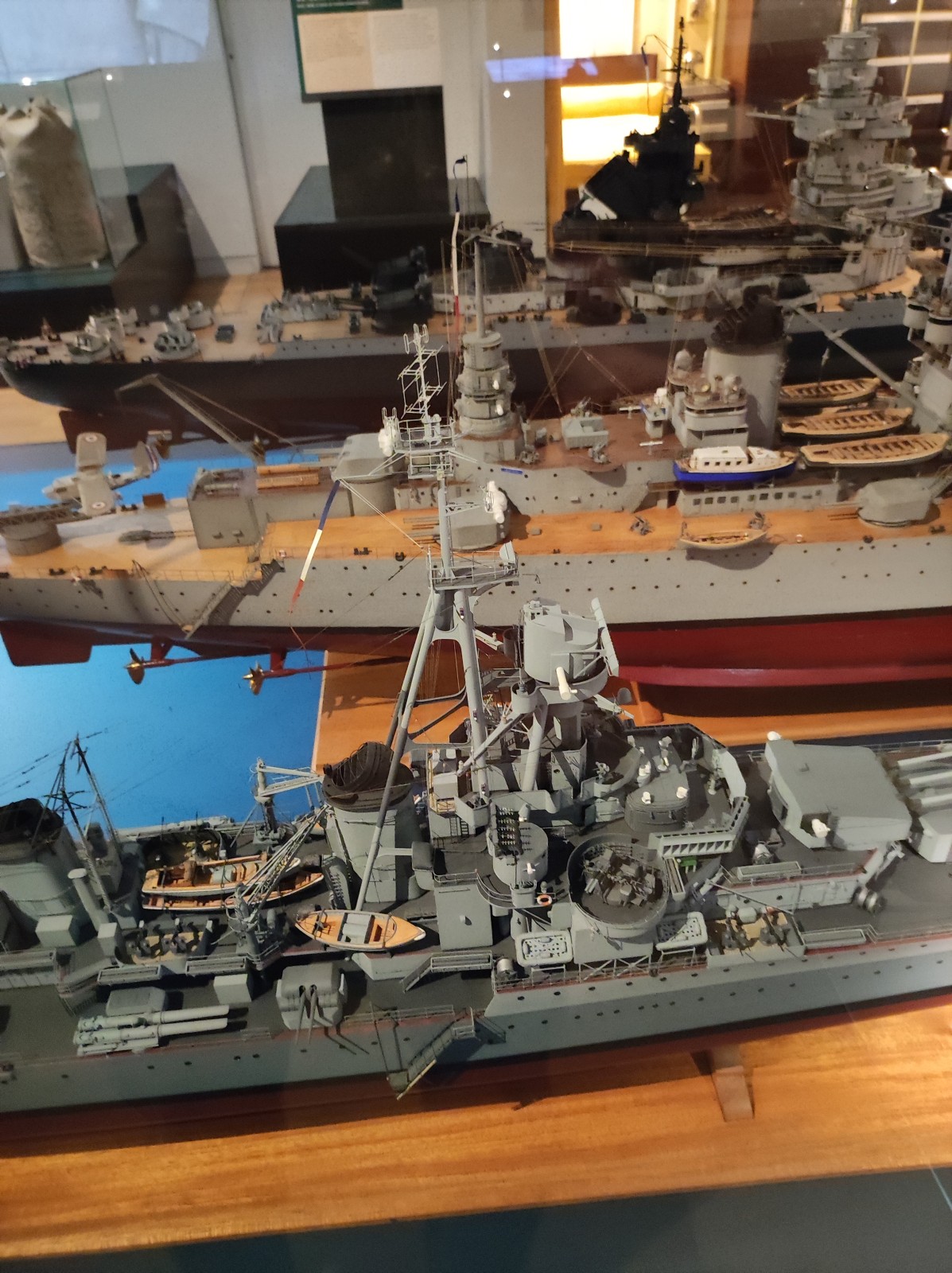 Weiter geht es mit Modellen im Musée national de la Marine de Paris aus der Zeit des Zweiten Weltkriegs, darunter der Flugzeugträger Béarn, der Leichter Kreuzer Georges Leygues, die Korvette Aconit sowie die Schlachtschiffe Lorraine, Dunkerque und Richelieu.