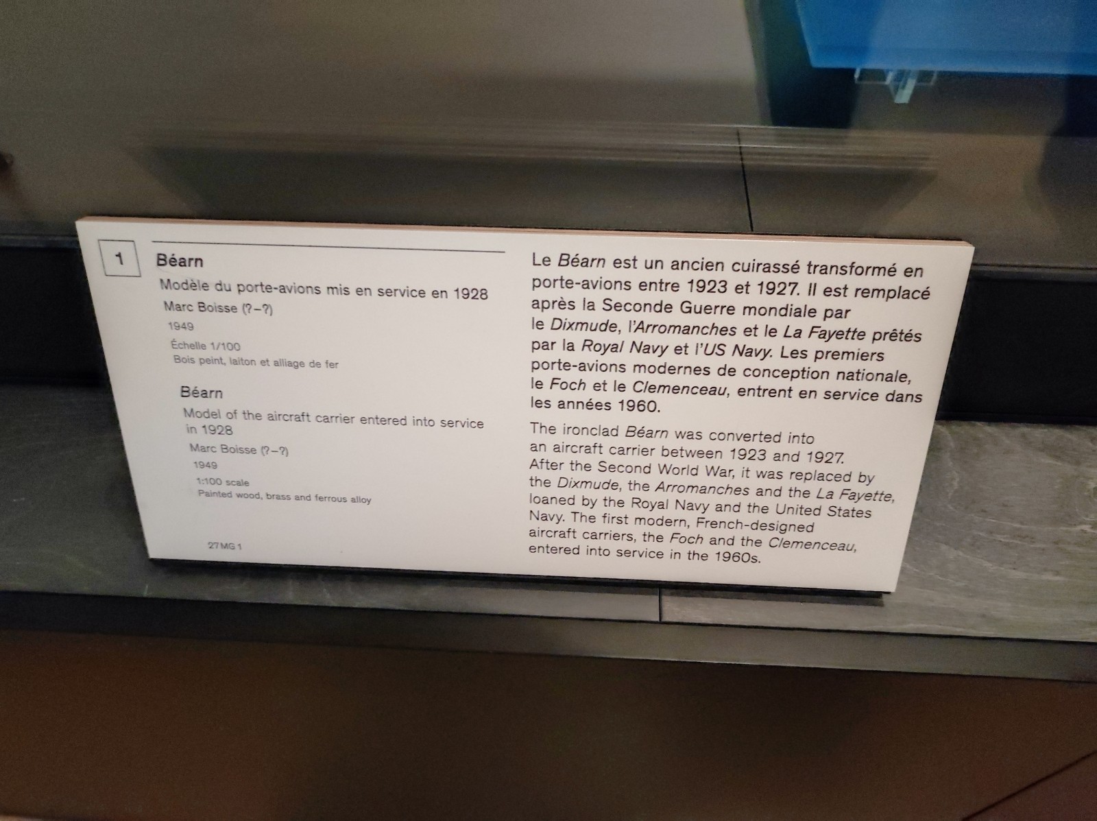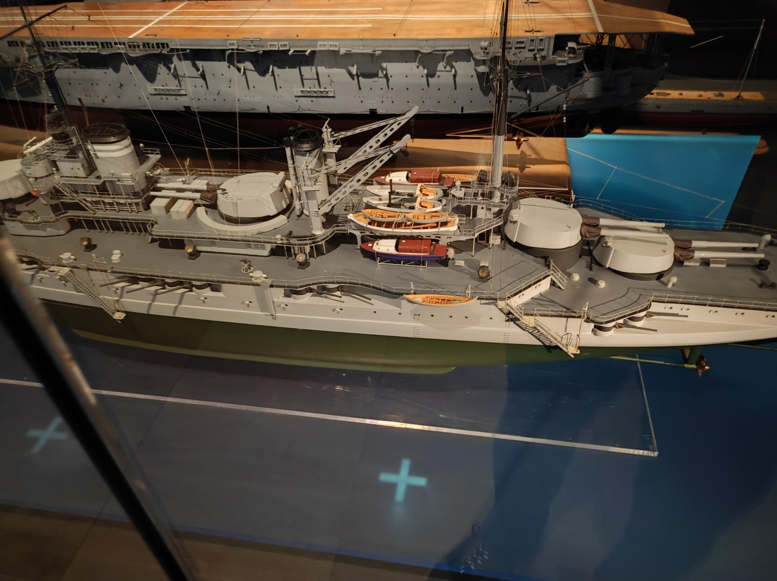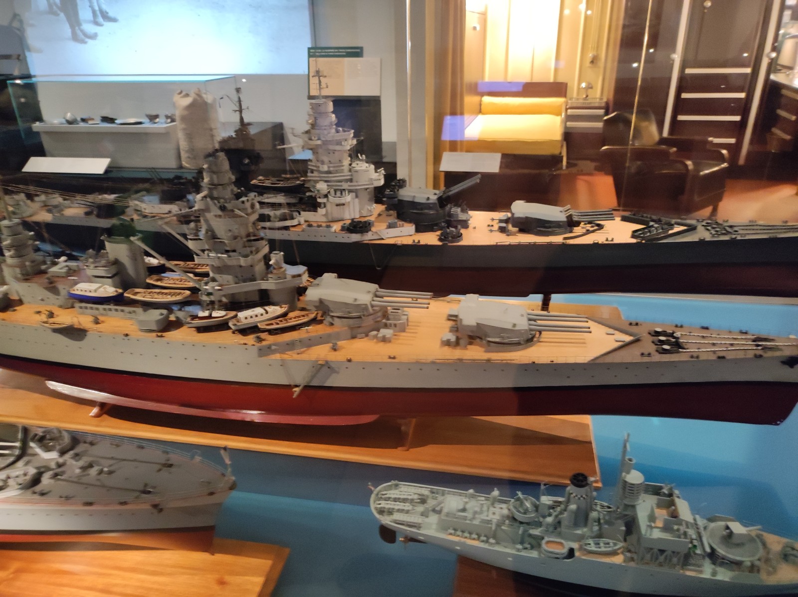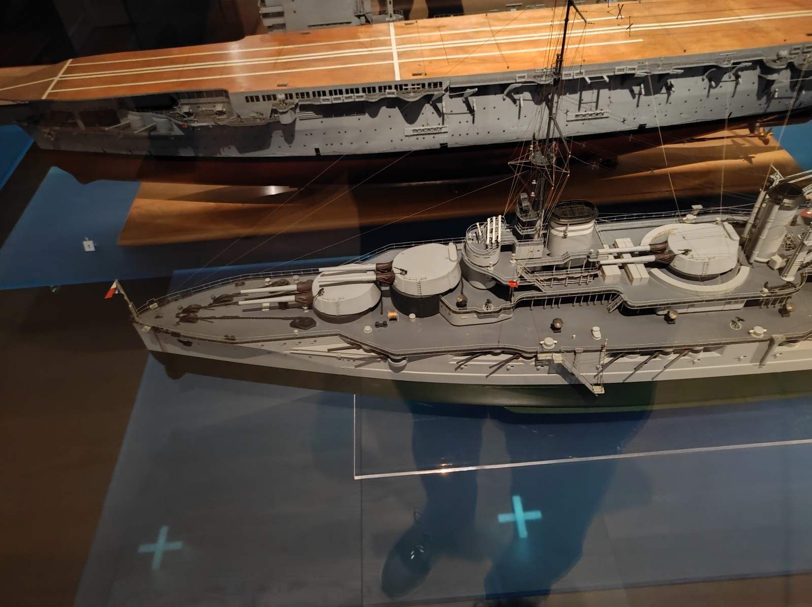 Weiter geht es mit Modellen im Musée national de la Marine de Paris aus der Zeit des Zweiten Weltkriegs, darunter der Flugzeugträger Béarn, der Leichter Kreuzer Georges Leygues, die Korvette Aconit sowie die Schlachtschiffe Lorraine, Dunkerque und Richelieu.