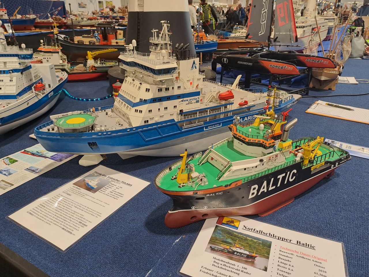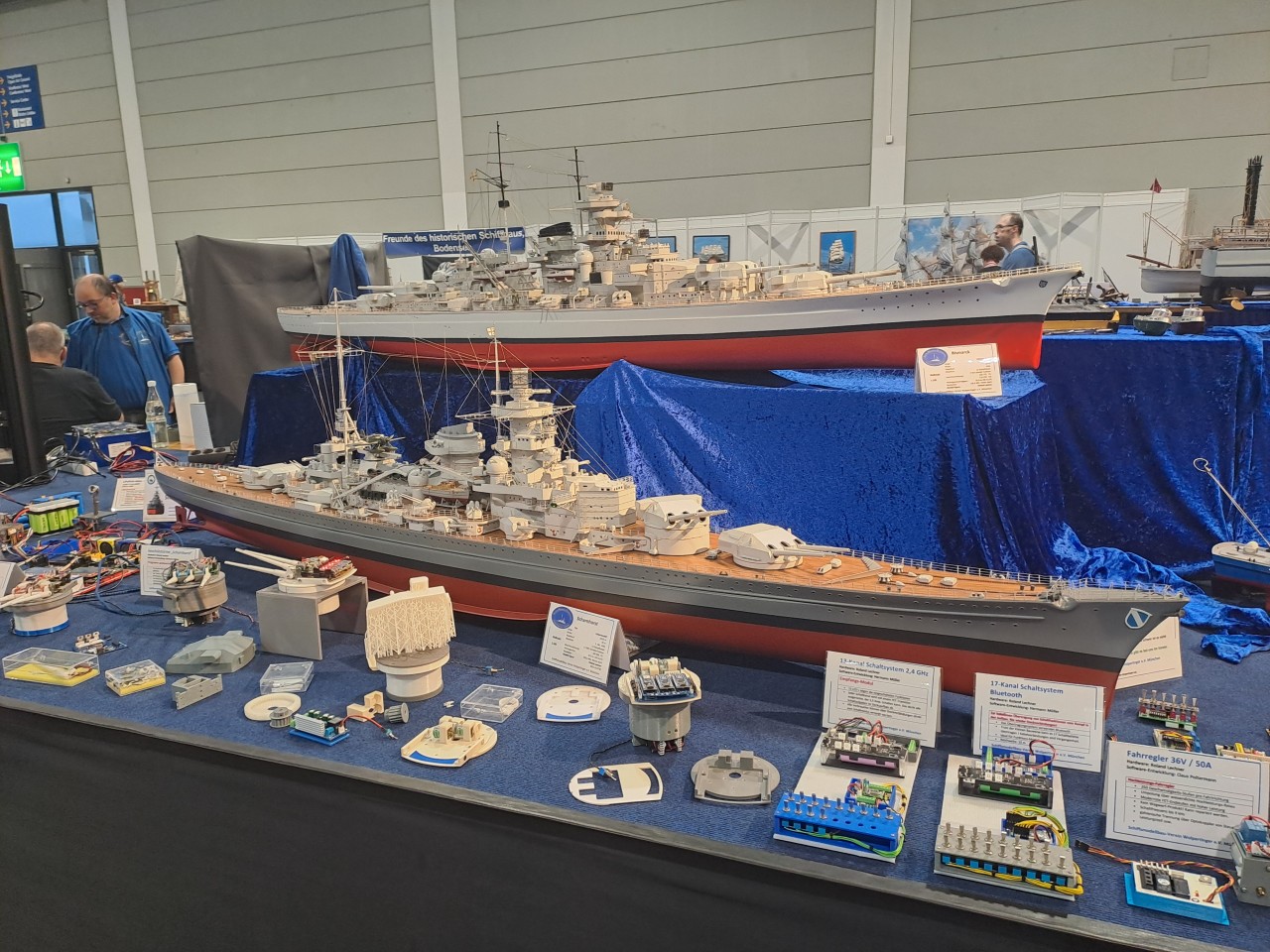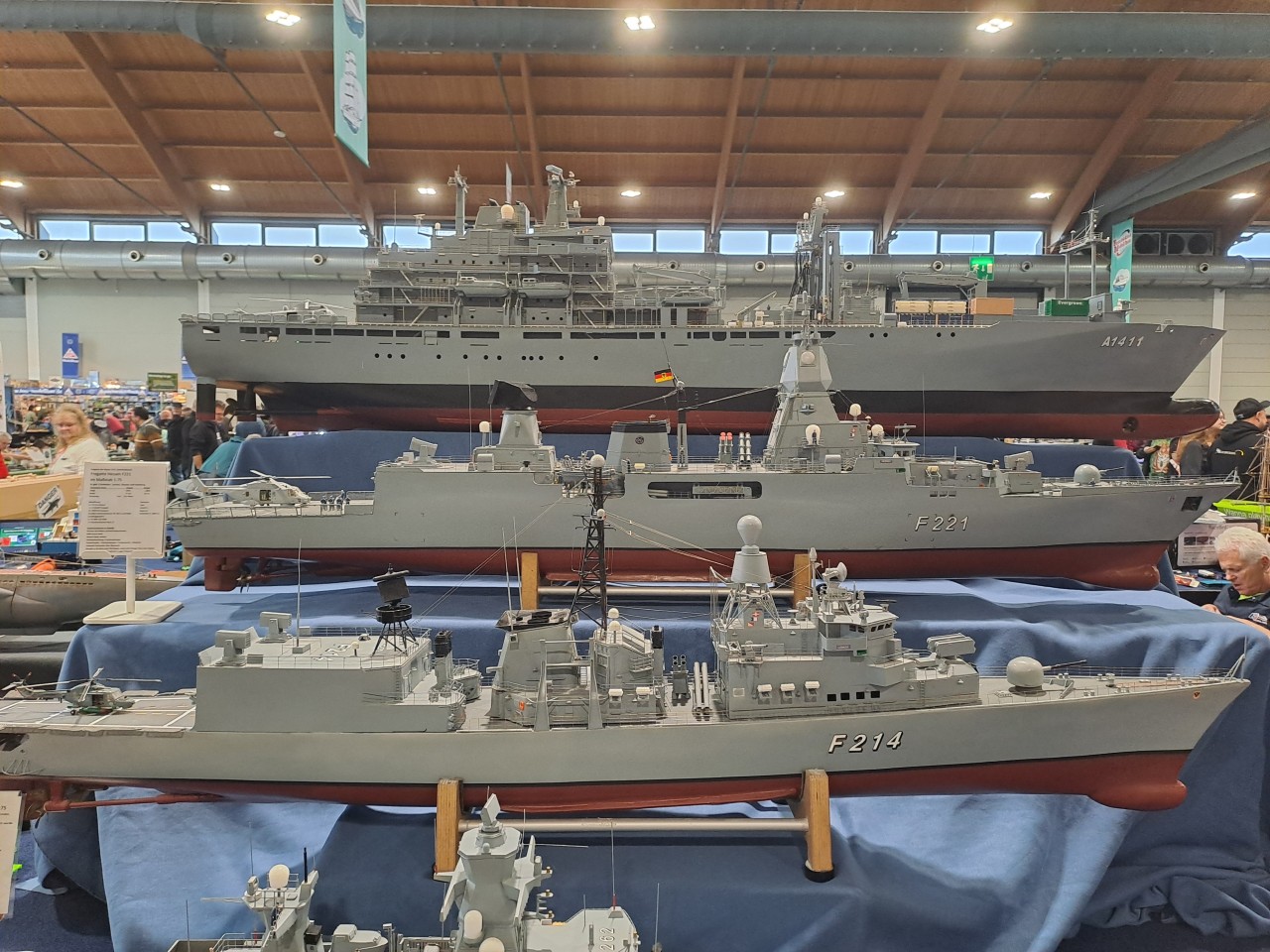 Hier weitere Fotos von der Faszination Modellbau 2025, die vom 31. Oktober bis zum 2. November 2025 in Friedrichshafen stattfand. Es gibt u.a. Modelle in kleineren Maßstäben, aber auch Modelle in großen Maßstäben von historischen Segelschiffen sowie RC-Modelle zu sehen: