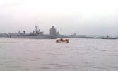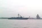 HMS Edinburgh fährt zum letzten Mal den Mersey herunter. Ein RNLI-Luftkissenfahrzeug war der lauteste Teilnehmer der Parade.