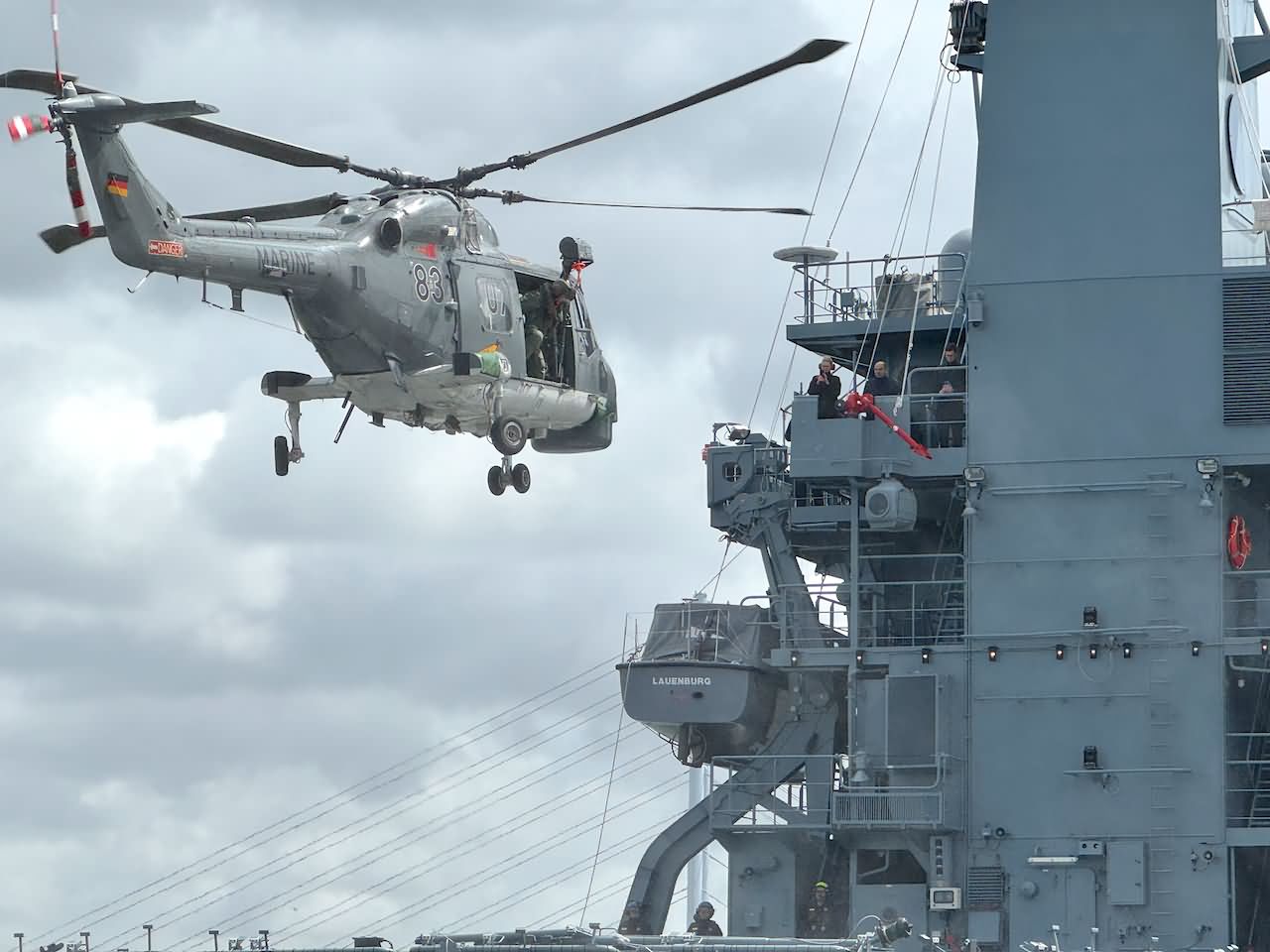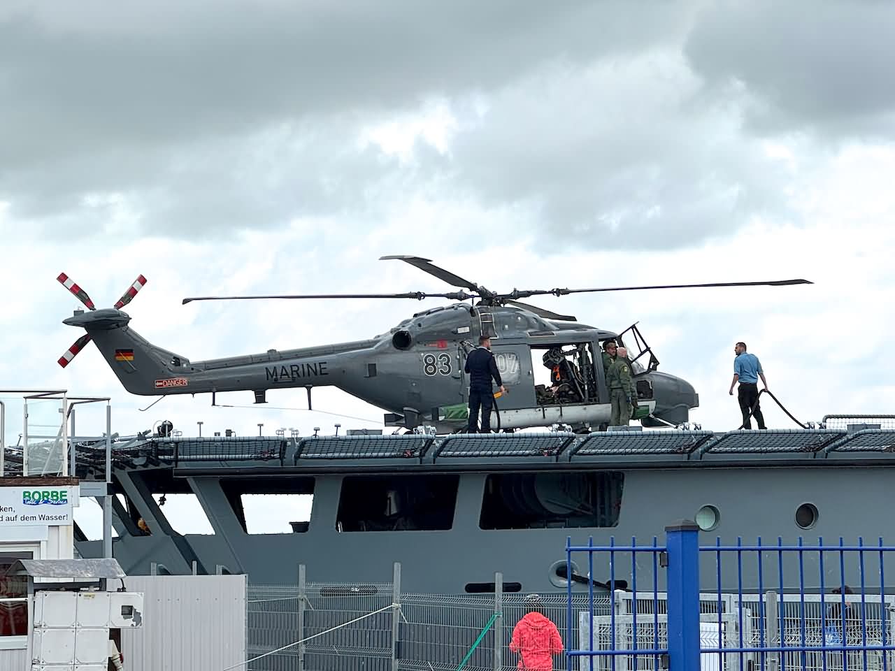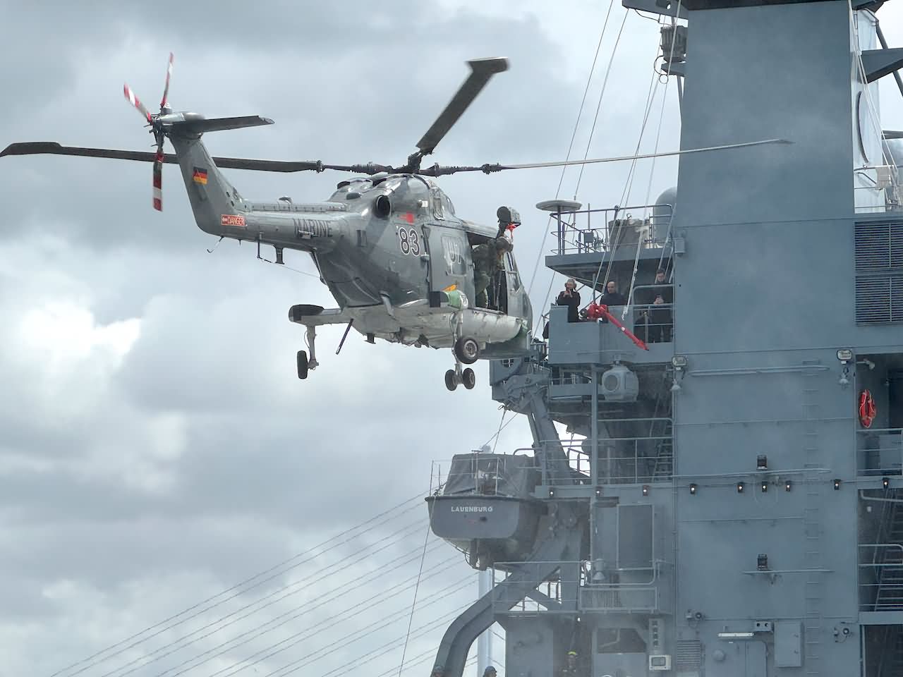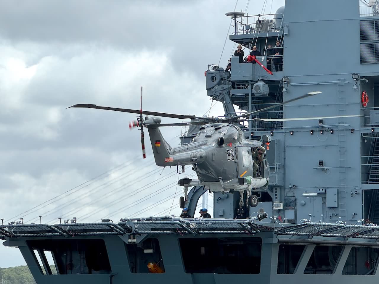 Elbe nahm am 28. Juni 2025 am Tag der Bundeswehr in Stralsund teil. Auf ihr landete der Sea Lynx 83+07 (siehe auch Fotogalerie):