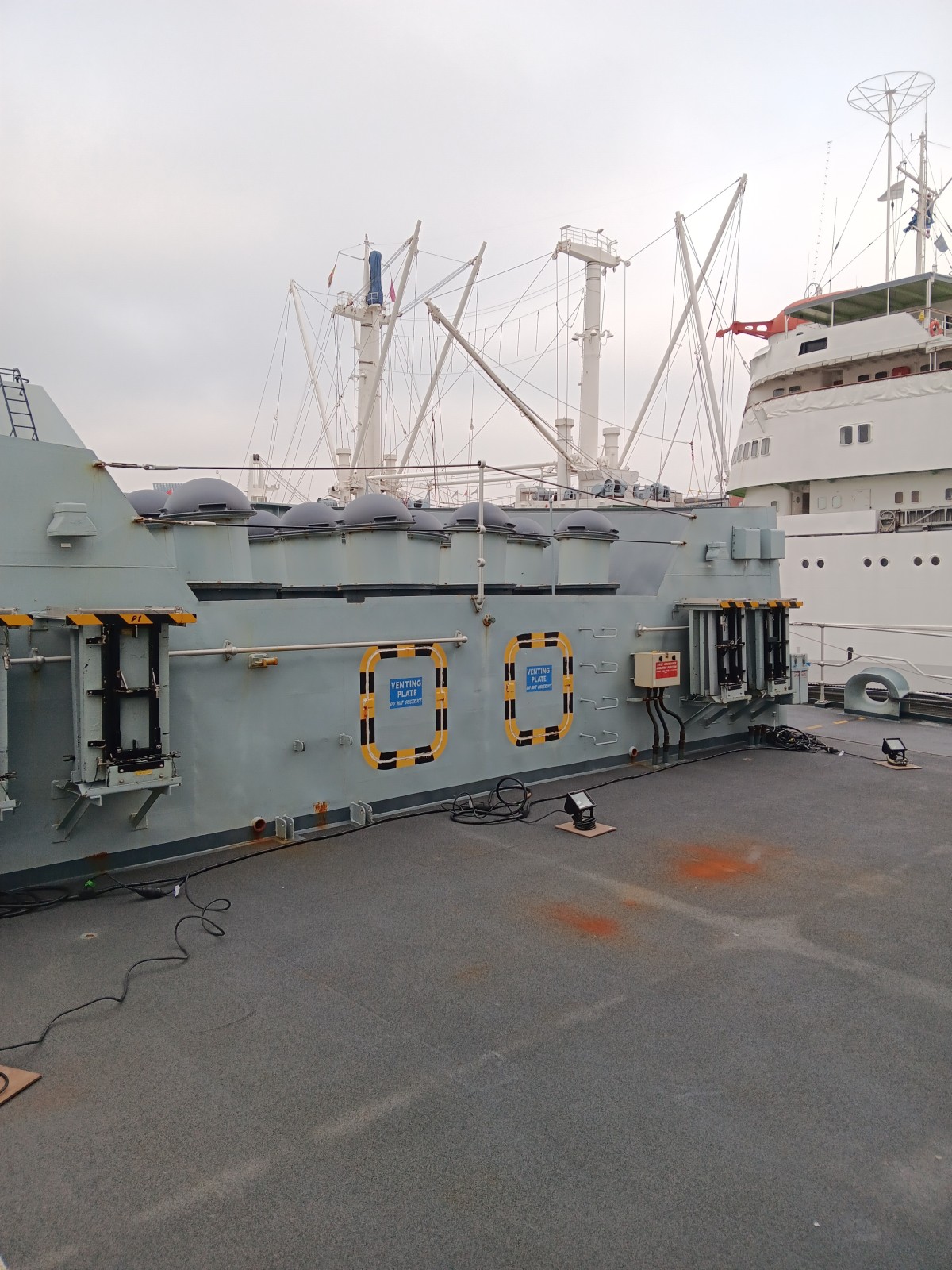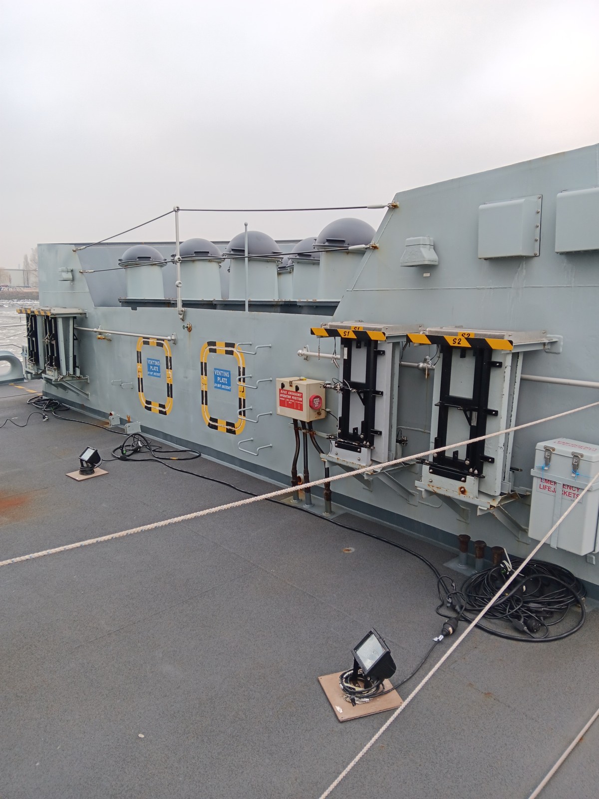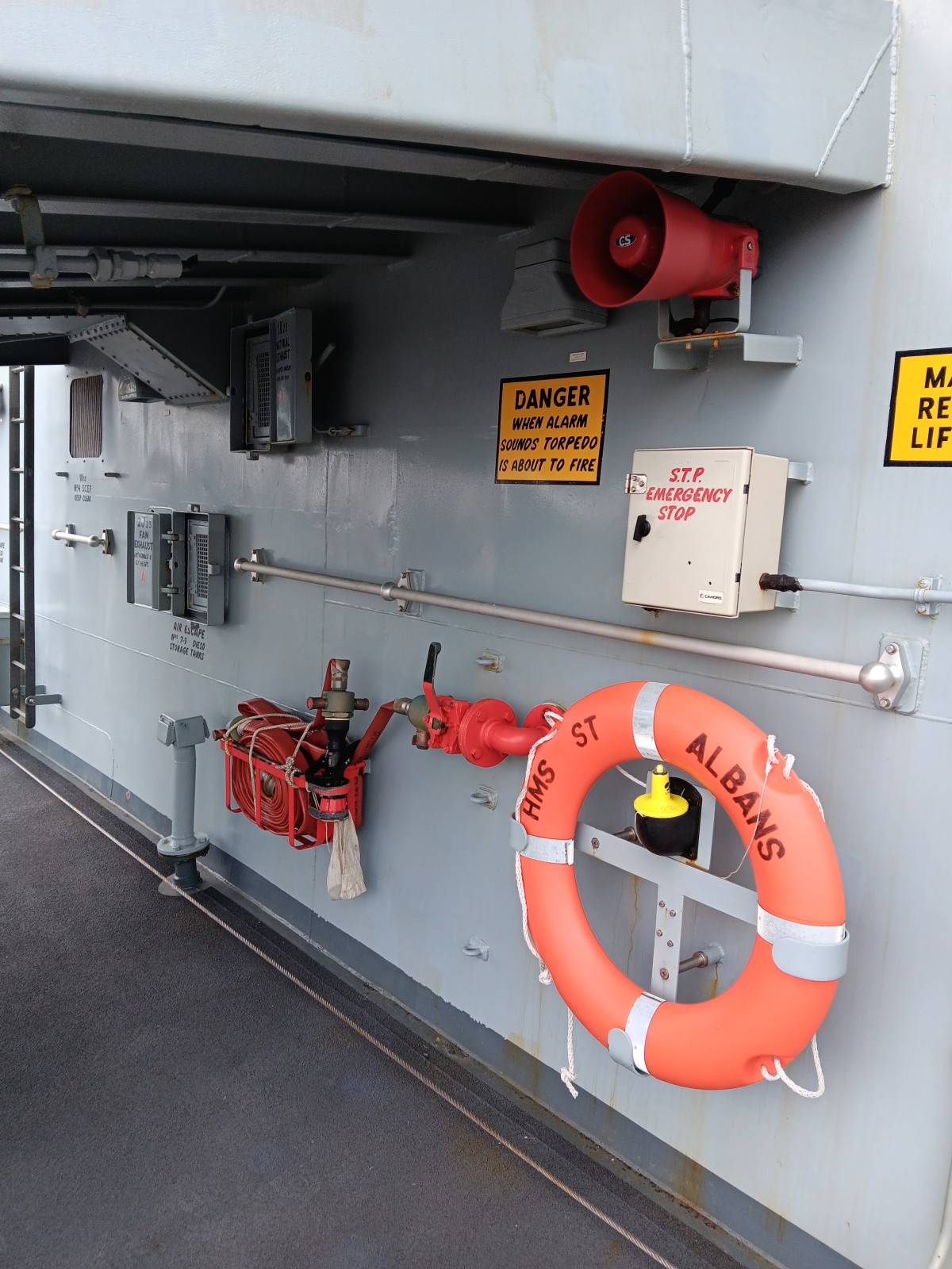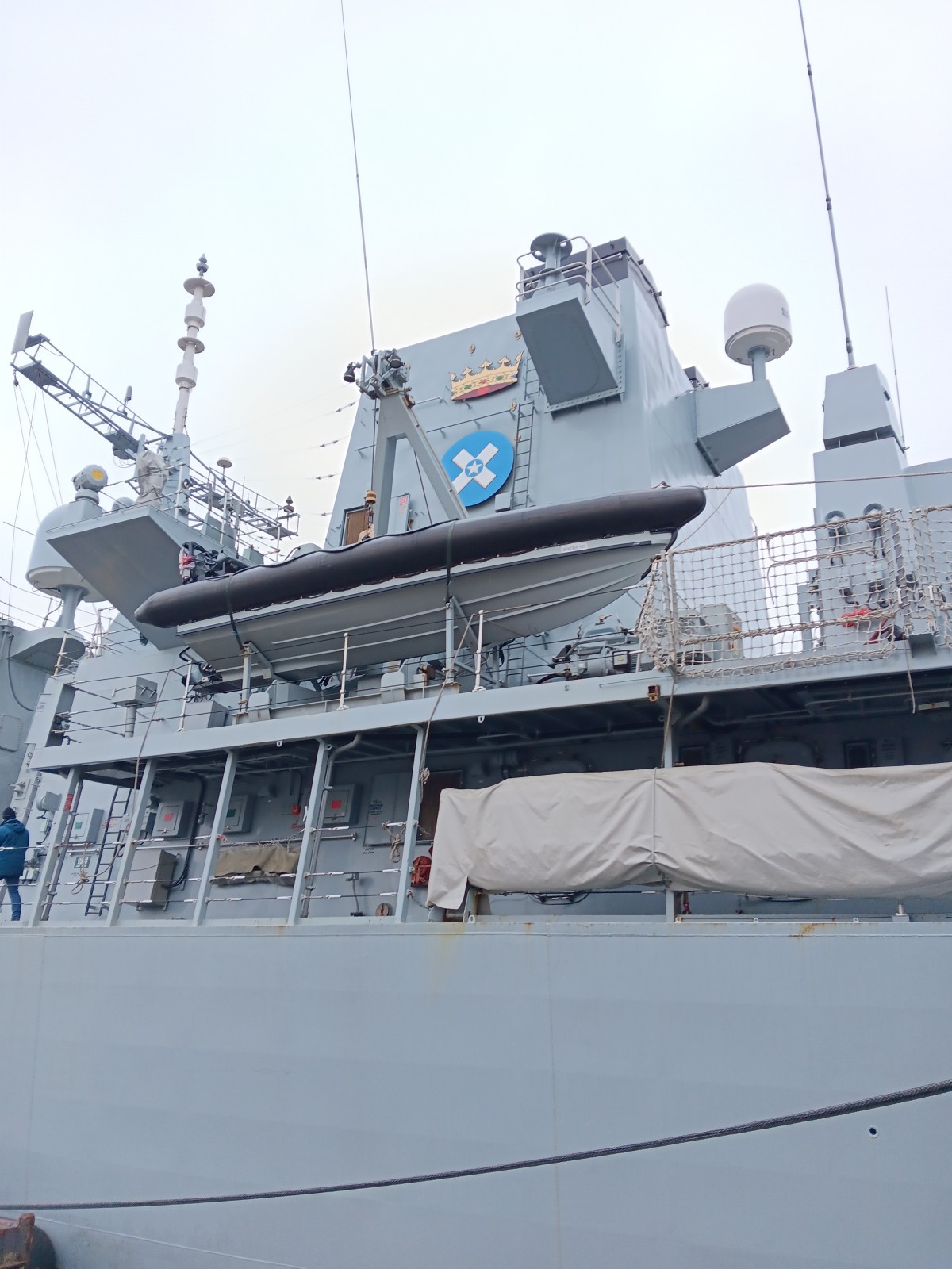Bei Minusgraden nutzte ich die Gelegenheit, die Fregatte der Royal Navy St Albans zu besuchen. Zum „Open Ship" wurde am Samstag, den 24. Januar 2026 ab 10 Uhr eingeladen. Es konnten das Oberdeck und der Flugzeughangar besichtigt werden. Die Besatzung hatte dazu einiges an Gerät und Bewaffnung zur Demonstration aufgebaut und ausgelegt. Fragen wurden sehr gerne und sehr ausführlich beantwortet. Der Schiffsentwurf stellt für mich noch ein klassisches Kriegsschiff aus der Zeit dar, bevor das Zeitalter des Stealth-Designs anbrach, um Radarsignaturen gering zu halten. Eigentlich sollte auch das französische Küsten-Patrouillenboot FS Pluvier kommen, dessen Besuch jedoch abgesagt wurde. Bei meinem Besuch waren weder ein Bordhubschrauber noch die ursprünglich zur Bewaffnung gehörenden Harpoon-Starter bzw. die sie ersetzenden NSM-Starter vor dem vorderen Aufbau zu sehen.