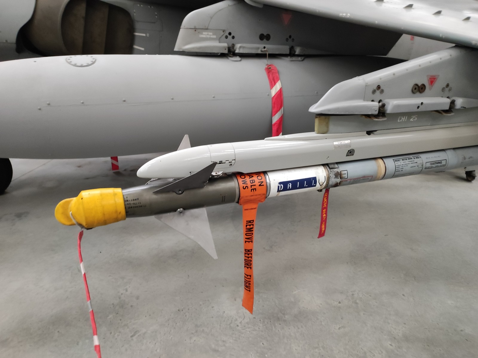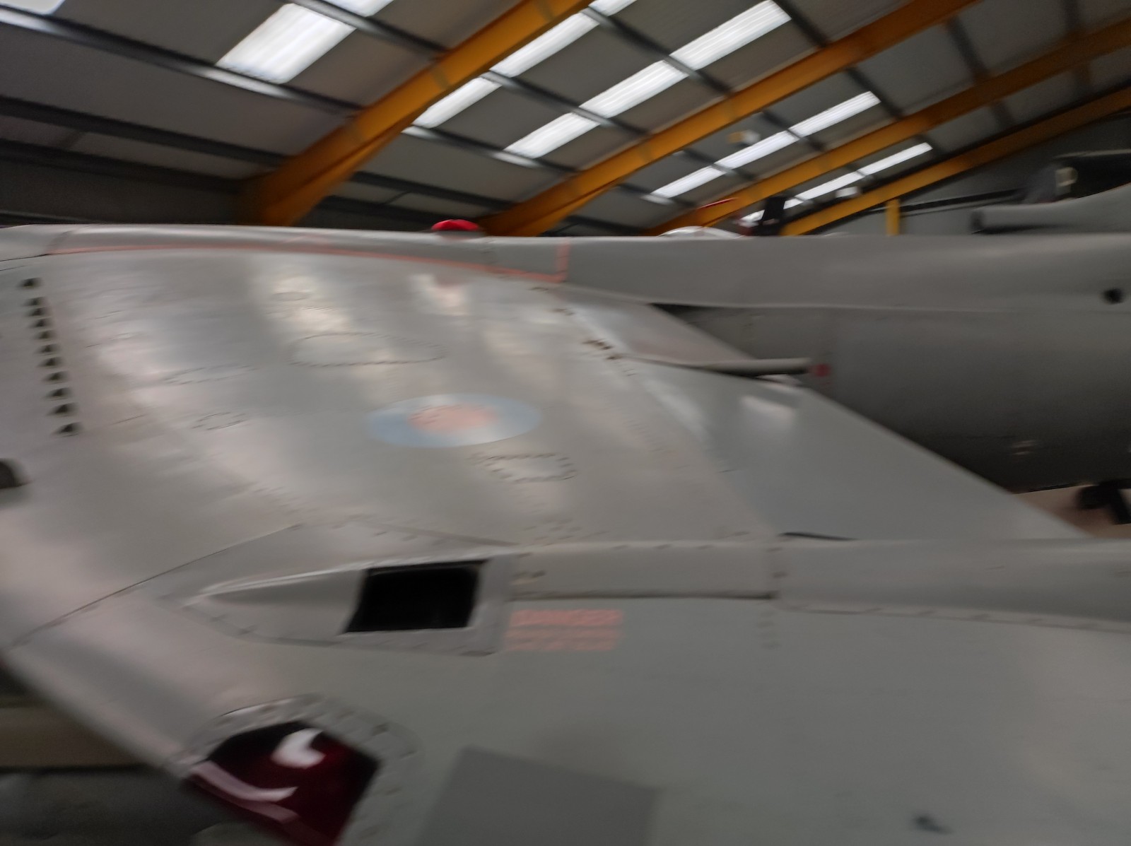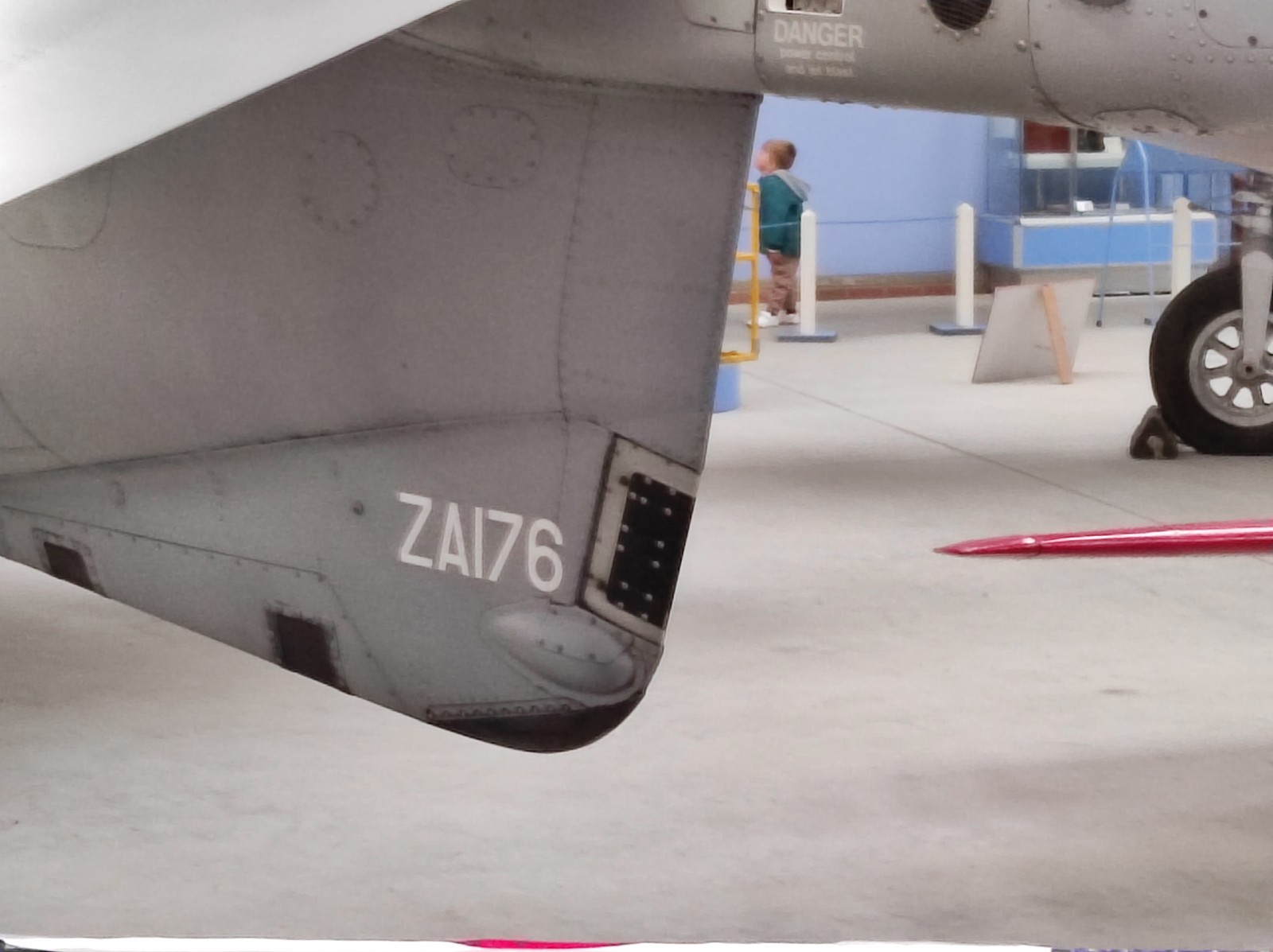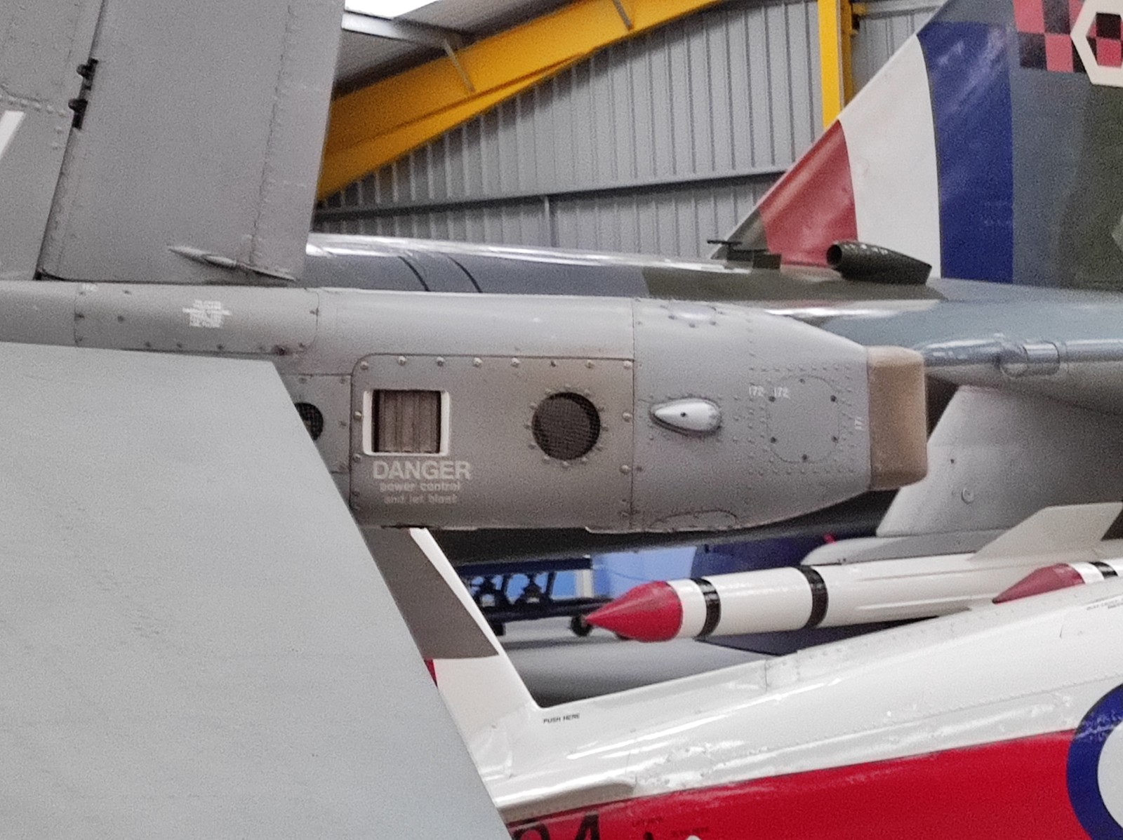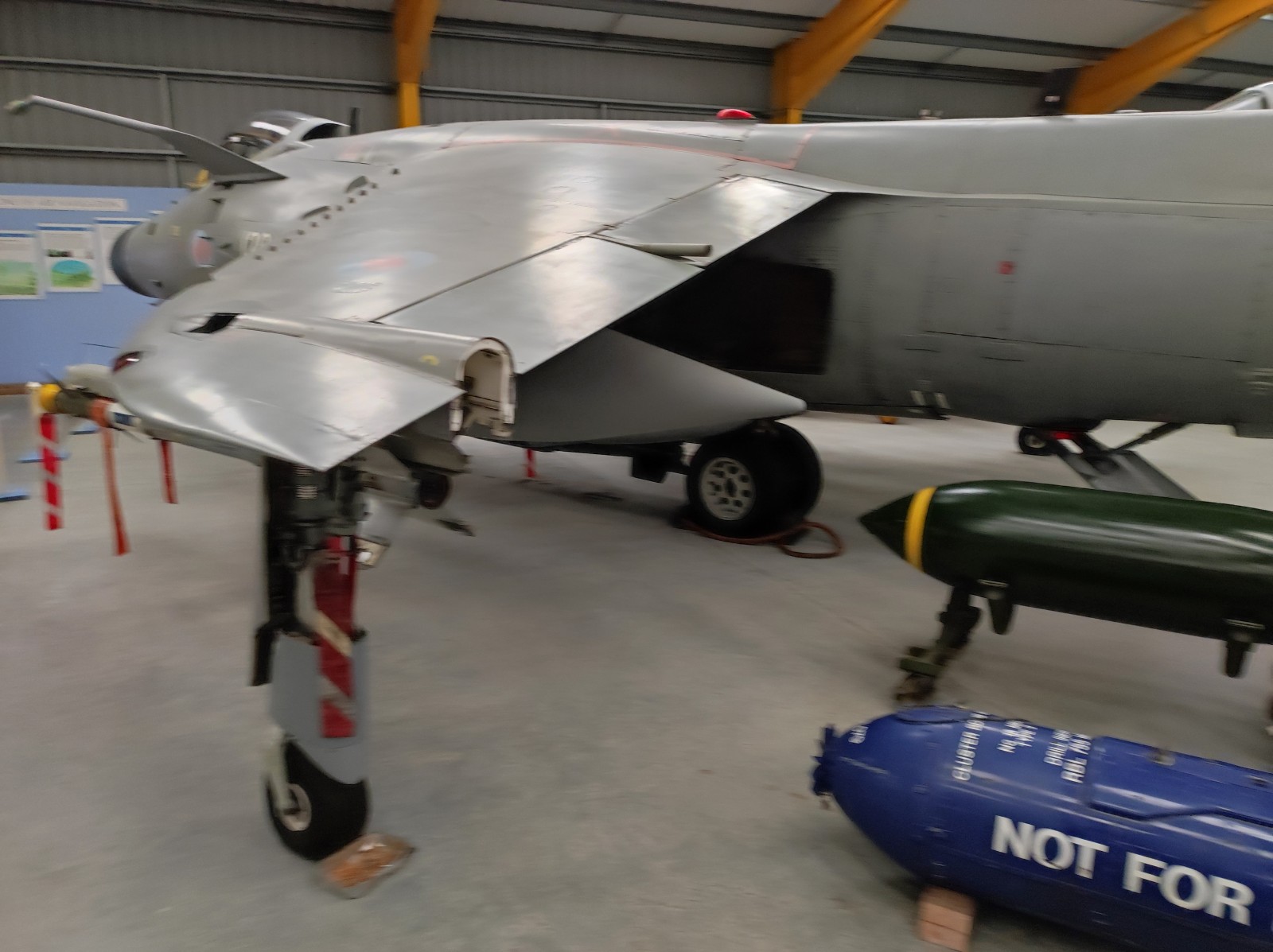 Der Sea Harrier FA.2 mit der Kennung ZA176 wurde 1981 als FRS.1 gebaut und diente Anfangs bei der 809 Naval Air Squadron (809 NAS). Sie wurde von der Atlantic Conveyor im Falklandkrieg in den Südatlantik transportiert und diente dort von dem Flugzeugträger HMS Hermes aus. Sie hat wahrscheinlich eine argentinische Mirage III abgeschossen. Nach dem Krieg kam sie zur 801 NAS. Am 7. Juli 1983 fand ihr Pilot nach einem Übungseinsatz von dem Träger HMS Illustrious nicht mehr zurück zum Träger und landete, als der Triebstoff auszugehen drohte, auf dem spanischen Containerschiff Alraigo. Das Flugzeug rutschte nach der Landung von den Containern und wurde beschädigt, konnte aber wieder hergestellt werden. Sie flog ab 1985 für die 899 NAS, 1989 wieder bei der 801 NAS und ab 1991 bei der 800 NAS. 1994 (oder 1992?) wurde sie zur FA.2-Variante umgebaut und flog danach wieder bei der 801 NAS. 1997-99 war sie in Yeovilton, flog aber dann bis 2003 wieder bei der 800 NAS. Ab 2004 ist sie im Newark Air Museum ausgestellt. Dort fotografierte ich sie im November 2023 :