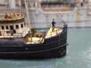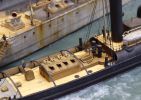 Die Beplankung des Rumpfes war viel zu grob für den Maßstab. Deshalb wurde sie abgeschliffen und neue, viel subtilere Beplankungsstreifen wurden mit Klebeband erstellt, und alle Wetter- und Oberdecks wurden durch Beplankungen ersetzt, die nach vorne und hinten ausgerichtet waren ... und vieles mehr ... Für den vollständigen, langwierigen zehnjährigen Baubericht, siehe auf Modelwarships.
