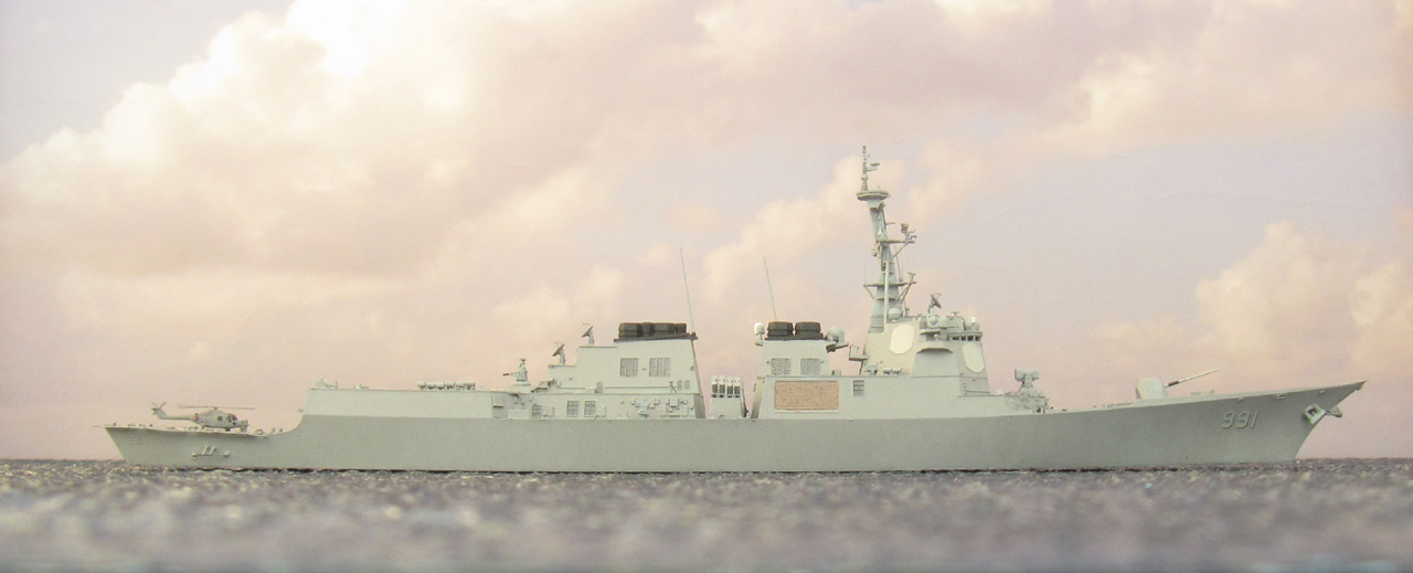 Das Modell des südkoreanischen Lenkwaffenzerstörers Sejong Daewang baute ich aus dem Bausatz von Salvo Models (Bausatzvorstellung). Ich entschied mich für die Darstellung des Bauzustands von 2016, der wegen der Teilnahme an RIMPAC gut dokumentiert ist. Der Bausatz besteht aus gegossenen und 3D-gedruckten Resinteilen, gedrehten Messingrohren und Fotoätzteilen. Die Detaillierung des Bausatzes und die Passgenauigkeit ist sehr gut. Leider sind die 3D-gedruckten Teile auf den Rahmen (im Gegensatz zur Anleitung) nicht markiert, so dass die Zuordnung etwas schwierig ist. Bei den Fotoätzteilen ist teilweise unklar, wie sie gefaltet werden sollen. Die 1,27-cm-Maschinengewehre und ihre Schutzschilde wurden genauso wie die Ankerketten vergessen. Ich benutzte Lafetten von L'Arsenal und Schutzschilde aus Papier für die Darstellung der MG. Die Ankerketten nahm ich aus der Restekiste. Die Stabantennen auf der Brücke und am Schornstein im Bausatz falsch dargestellt: die drei langen gedrehten Antennen sind passend, aber die beiden kurzen gedrehten Antennen ersetzte ich durch dünnere, aber längere Antennen aus 0,05-mm-dicken Kupferdraht. Auf dem Hubschrauberdeck sind Poller ausgefahren dargestellt, die ich auf den Originalfotos immer nur eingefahren gesehen habe - und mit einem Hubschrauber auf dem Deck machen ausgefahrene Poller auch keinen Sinn. Mir ist das leider zu spät aufgefallen - die Poller kollidierten auch noch mit den Hubschrauberdeckmarkierungen. Ich entfernte sie dann nach dem Anbringen der Markierungen...