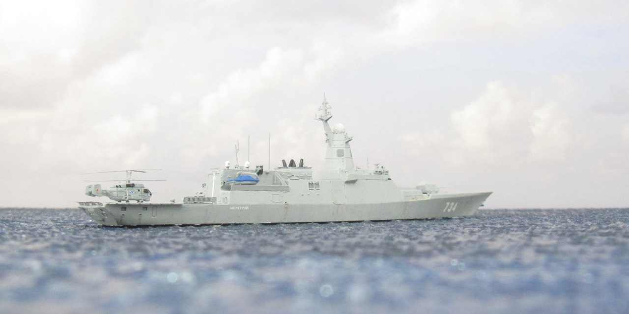 Ich entschied mich den Bauzustand der Merkurij von 2024 darzustellen, insbesondere um einen etwas anderen Anstrich als den des schon von mir gebauten Schwesterschiffs Soobrasitelny des ersten Los des Projekts 20380 verwenden zu können.
