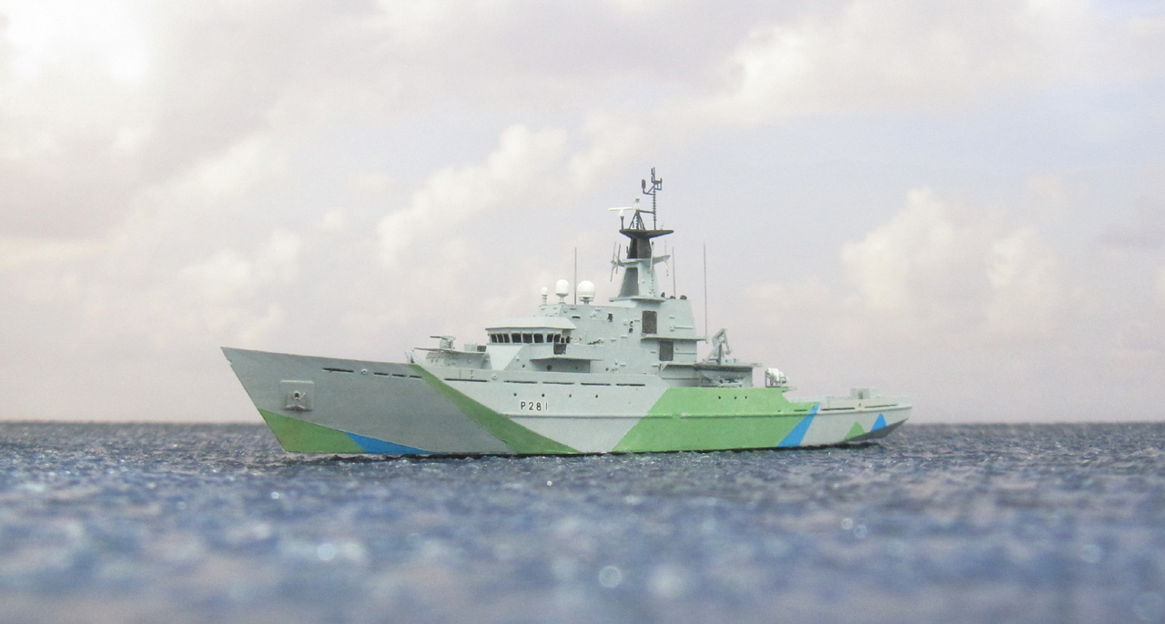 Das britische Patrouillenschiff HMS Tyne habe ich aus dem Bausatz von EVModel (siehe Bausatzbesprechung) gebaut. Das Modell soll den Bauzustand von 2023 darstellen.