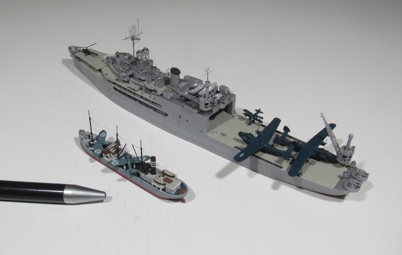 Tanja wurde 1928 als Seeflugzeugtender verwendet - hier im Vergleich zu einem großen Exemplar dieses Typs, der USS Currituck (1944):