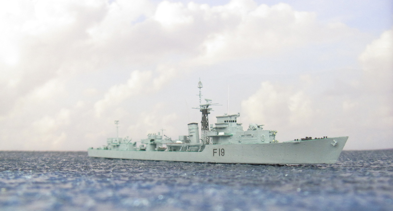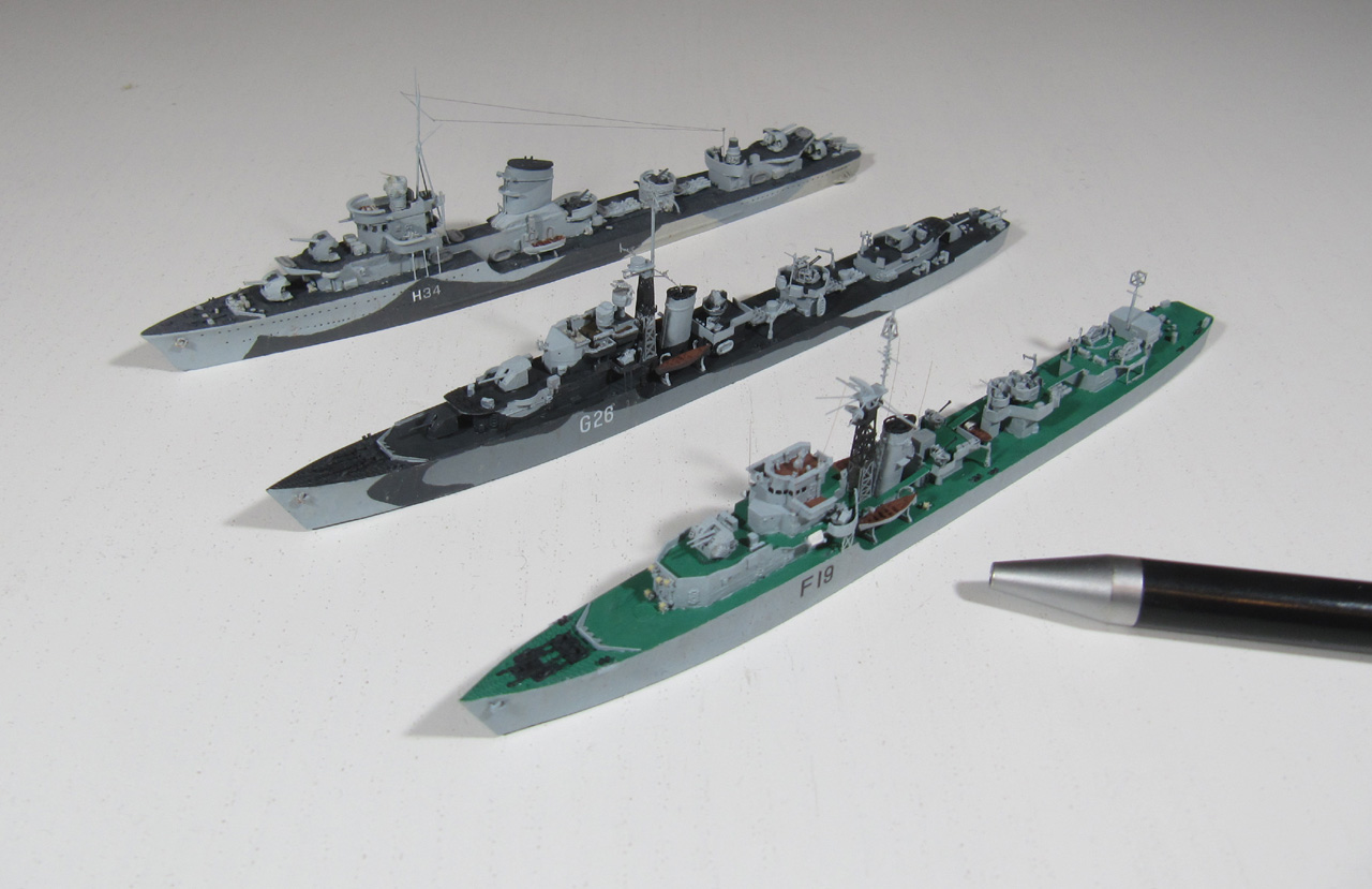 Die britische Fregatte HMS Terpsichore habe ich aus dem Bausatz des Typ 16 von Starling Models gebaut (siehe Bausatzbesprechung). Der Bausatz ermöglicht den Bau von HMS Tenacious oder HMS Terpsichore. Ich entschied mich für letztere, da sich diese durch die neue geschlossene Brücke von den anderen Zerstörer-Klassen (O- bis Cr-Klasse) des War Emergency Programme optisch deutlicher unterscheidet (Tenacious behielt beim Umbau zum Typ 16 die alte Brücke).