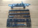 Zvezda präsentiert diesen Bausatz, der sich durch seine Größe von 48,5 cm auszeichnet und in drei Hauptteile sowie zwei weitere Teile unterteilt ist, die die Seiten des Raketenbereichs bilden. Der Bausatz ist ziemlich kompliziert zusammengebaut und weist Probleme bei der Montage auf, die einen großen Aufwand beim Verspachteln und Lösen der damit verbundenen Probleme erfordert. Es verfügt über zwei offene Raketensilos, die aber auch kompliziert zu bauen sind. Der Heckbereich ist vom Hauptkörper getrennt und erfordert ebenfalls Arbeit bei der Anpasssung. Die Propeller werden vom Hersteller zum Zusammenbau geliefert, was es ziemlich schwierig macht, ein gutes Ergebnis zu erzielen. Ich habe mich entschieden, sie auf einem 3D-Drucker herzustellen, um ein genaueres Modell zu erhalten. Der Turm erfordert eine sorgfältige Montage, u.a. der Ausfahrgeräte, die optional Aus- oder Eingefahren dargestellt werden können. Ich habe alle Elemente durch Stäbe entsprechender Dicke ersetzt und die verschiedenen Schiffssensoren platziert.