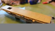 Nach einer Grundierung mit Surface Primer von Vallejo und wurde es lackiert mit Model Air. Welche Nummern ich hierbei verwendete, kann ich leider nicht mehr nachvollziehen. Die weißen Streifen auf Deck wurden mittels Abdeckband ebenfalls lackiert. Danach wurde sämtliche Seile und Drähte mit Ultra Fine Rigging von Infiniti erstellt.