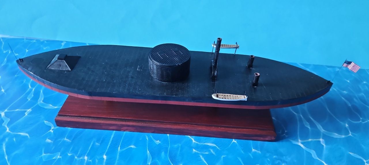 Der Bau der USS Monitor erfolgte vom 25.10.1861 bis 25.2.1862. Vorgesehen war der Einsatz in flachen Gewässern, also Flüssen oder Küstenbereich. Der Freibord betrug nur 46 cm. Das Schiff war für die damalige Zeit stark gepanzert und hatte einen drehbaren Zwillingsturm mit 28-cm-Geschützen. Die Dampfmaschine hatte eine Leistung von 320 PS, die auf eine 4-flügelige Schraube wirkten. Eingesetzt wurde das Schiff im US-Bürgerkrieg auf Seiten der Nordstaaten.