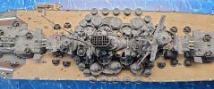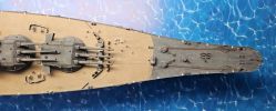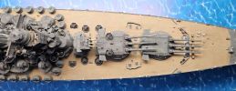 Die Rohre der 46-cm- und 15,5-cm-Geschütze wurden ersetzt durch ein Upgrade Kit für Mono Chrom A140. Bei den 46-cm-Geschützen sind die Metallrohre direkt verwendbar. Die Barbetten der 46-cm-Türme sind glatt. Für den Turm B fehlen die Leitern an der Barbette. Um die Leitern richtig zu positionieren muss zuerst einer Türme soweit gebaut werden, das die Leitern markieren und anzubringen sind. Dazu ist der Turm inkl. der Geschützrohre zu montieren.