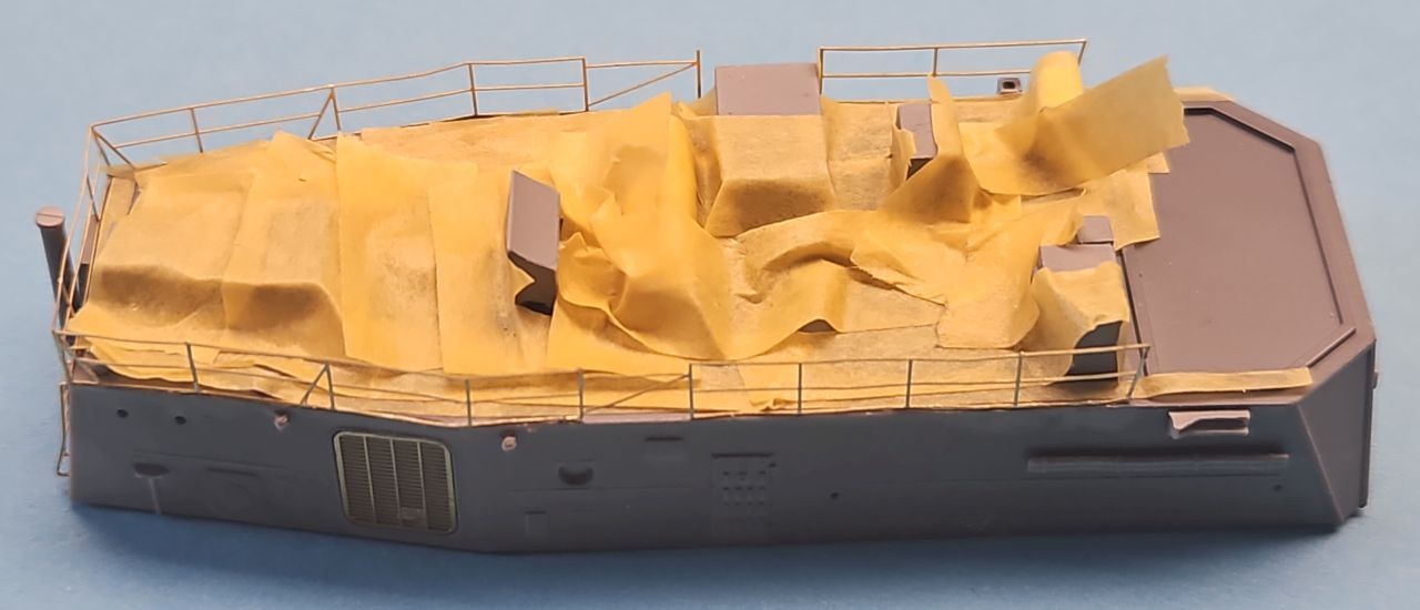 Um etwas Leben hineinzubringen gibt es auch eine Besatzung an Deck. Die Figuren sind aus 3D-Druckdateien von Germania Figuren, eigentlich Kriegsmarine.
