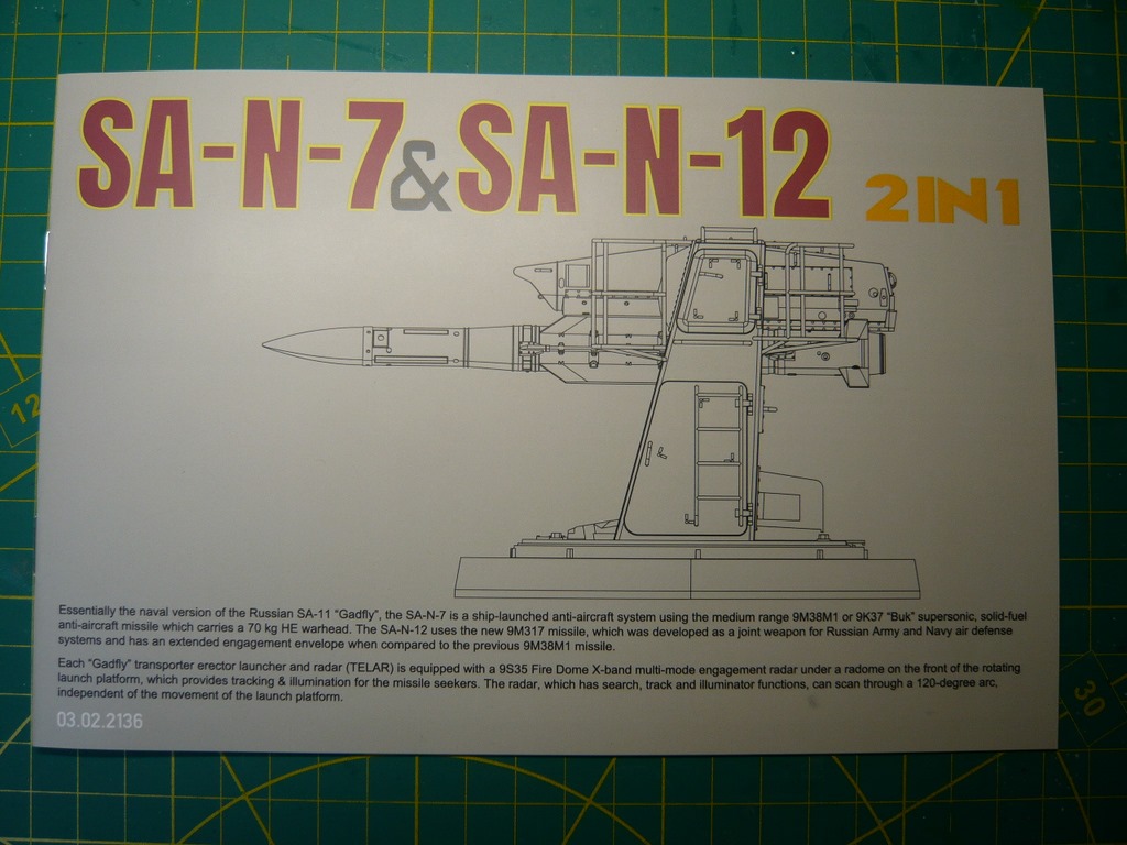 Bereits im Jahr 2020 bescherte uns Takom dieses außergewöhnliche Modell des 9S90 Uragan (SA-N-7)/9S90 Esch (SA-N-12) im Maßstab 1/35. Nach dem Öffnen des schick bedruckten Kartons sieht man insgesamt fünf Plastiktüten. Eine mit der Anleitung, den Decals und den Ätzteilen und je eine für die vier Gussäste aus hellgrauer Plastik.