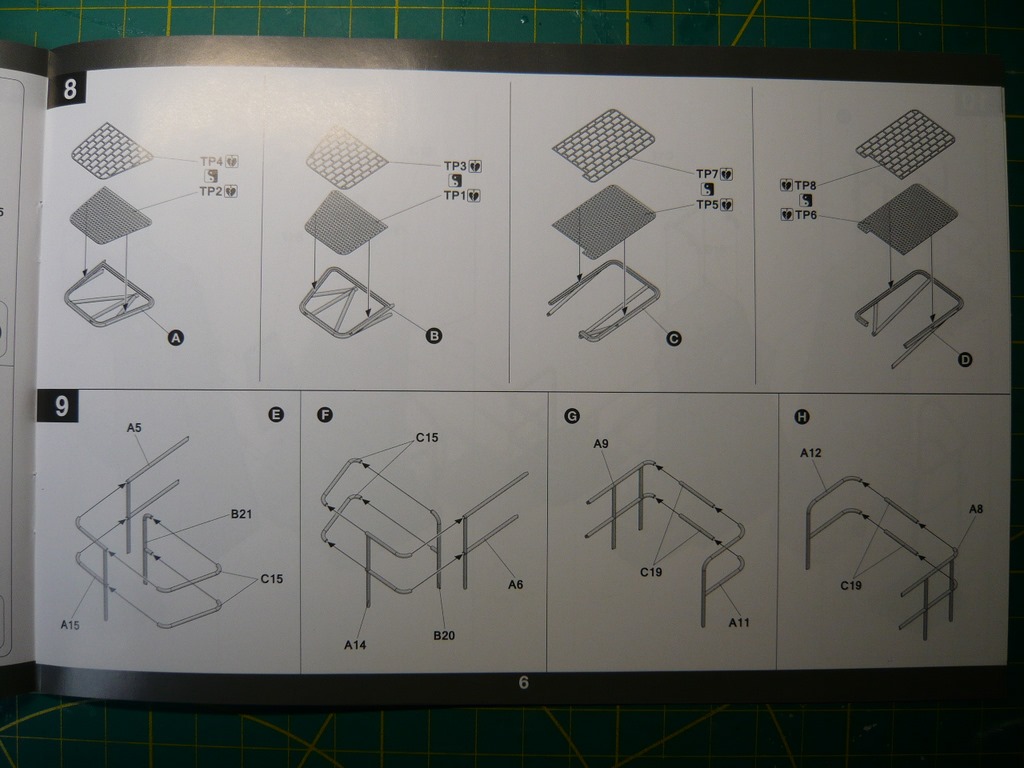 Die Anleitung ist ein kleines Heft im Format DIN A5 mit 14 Seiten. Der Bau wird auf neun Seiten mit 15 Bauabschnitten ausreichend beschrieben. Drei weitere Seiten dienen der Bemalungsanleitung. Als Farbsystem wird ausschließlich auf Ammo by MIG verwiesen.