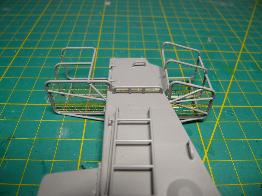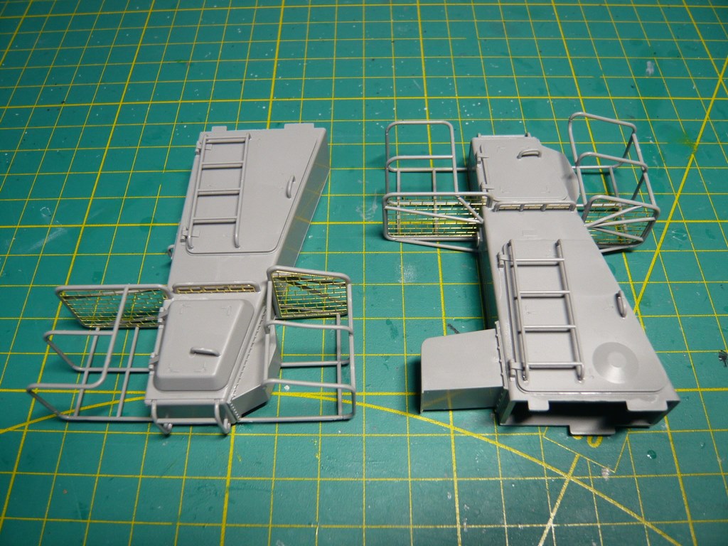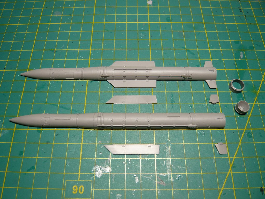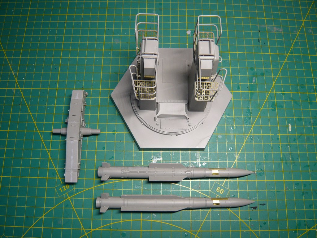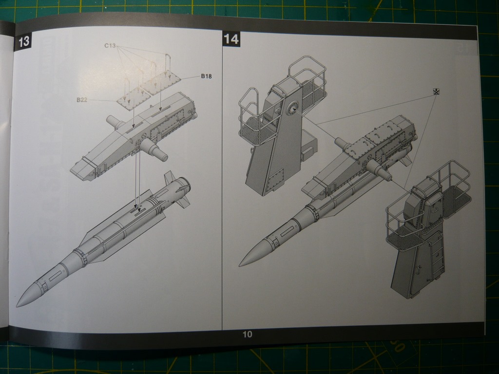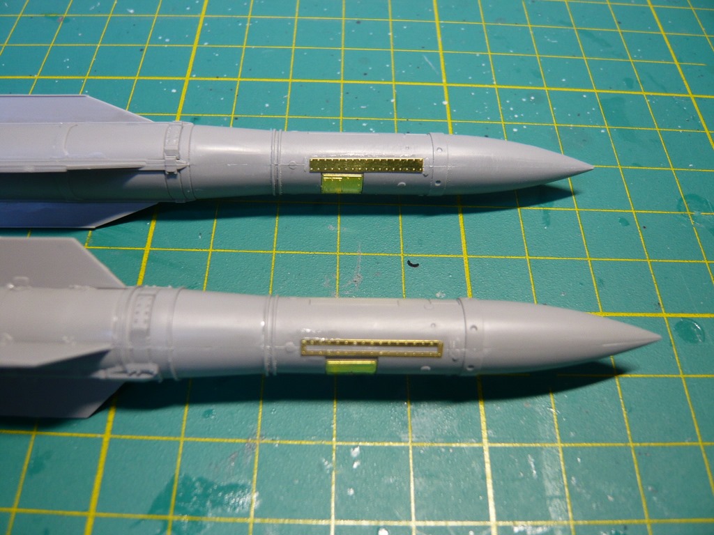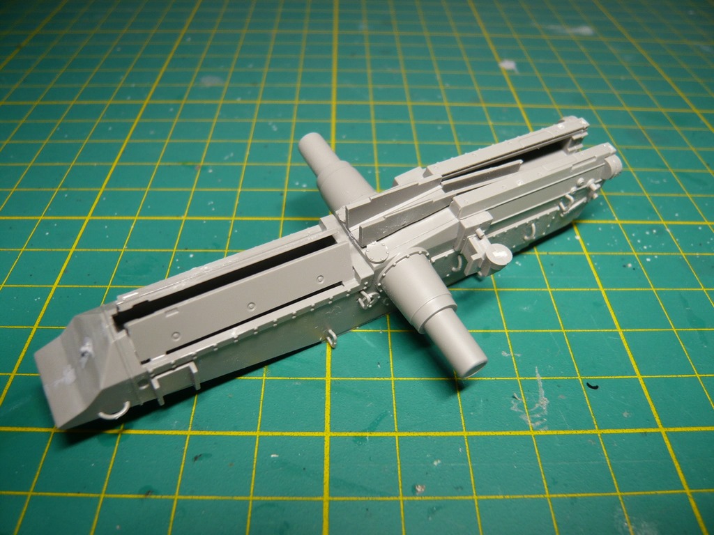 Die beiden Raketen entstehen jeweils aus acht Teilen, ergänzt durch optionale Ätzteile. Nach dem Verkleben lässt sich die Naht durch leichtes Überschleifen nahezu unsichtbar machen. Bis hierhin ist der Bausatz sehr anfängerfreundlich. Anspruchsvoller wird es beim Bau der filigranen Gitterrahmen mit zahlreichen dünnen Rohren und vier Ätzteilen, die Geduld und präzises Arbeiten erfordern.
