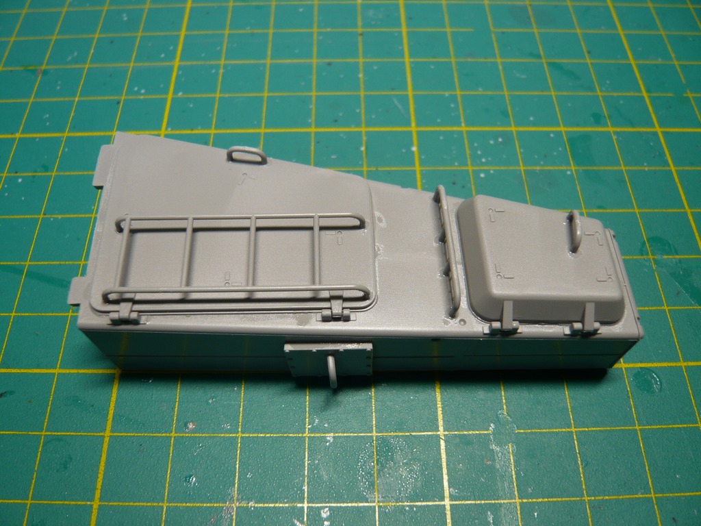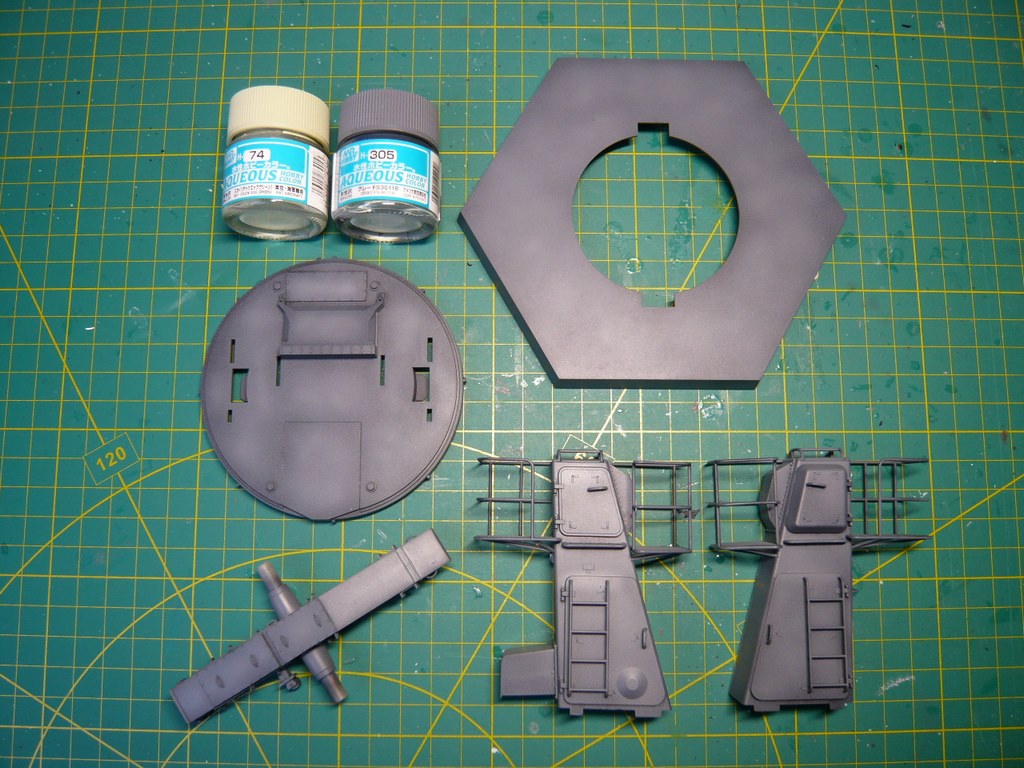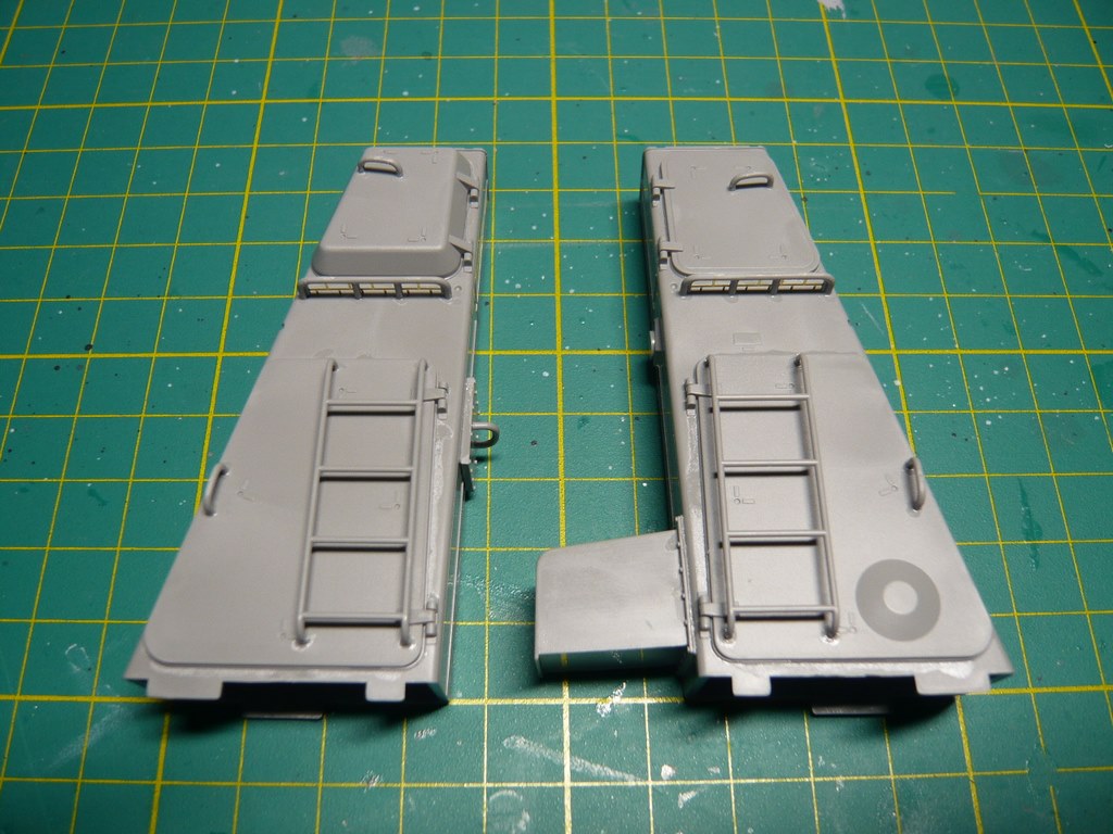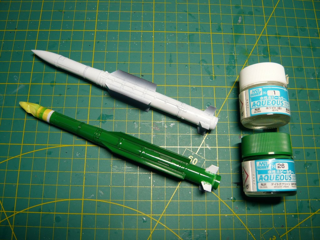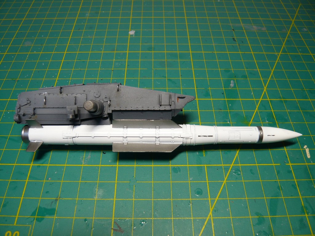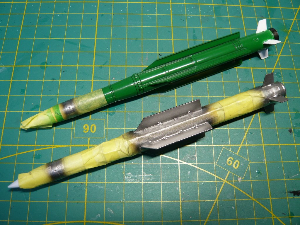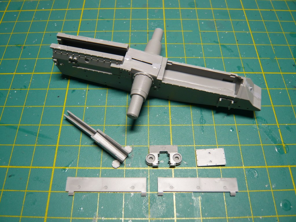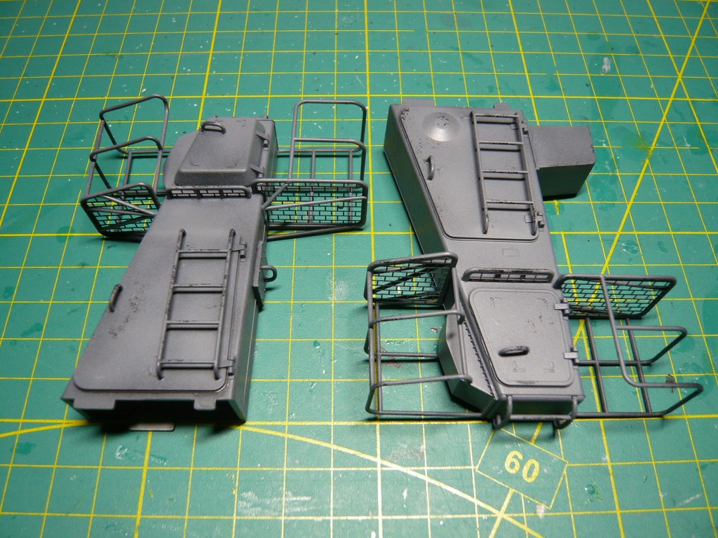 Die beiden Raketen entstehen jeweils aus acht Teilen, ergänzt durch optionale Ätzteile. Nach dem Verkleben lässt sich die Naht durch leichtes Überschleifen nahezu unsichtbar machen. Bis hierhin ist der Bausatz sehr anfängerfreundlich. Anspruchsvoller wird es beim Bau der filigranen Gitterrahmen mit zahlreichen dünnen Rohren und vier Ätzteilen, die Geduld und präzises Arbeiten erfordern.