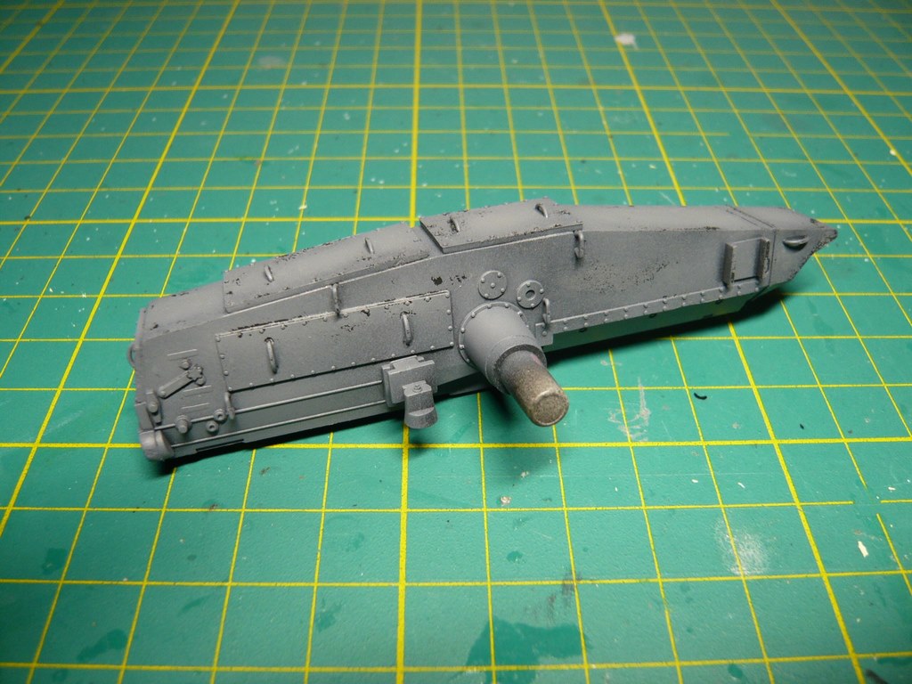 Nach dem Zusammenbau folgt die Lackierung: Grundiert, dann mit FS36118 (H305) gespritzt, zusätzlich aufgehellt mit einem Sky-Grau-Mix für Sonnenseiten. Eine Schicht Chipping Medium erlaubt realistische Abnutzungseffekte: Mit Wasser angelöst und vorsichtig abgerieben, treten Lackschäden und Gebrauchsspuren hervor. Details wurden durch Silberakzente an Griffen und Kanten hervorgehoben, außerdem sollen Rost- und Wasserablaufspuren die Alterung abrunden.