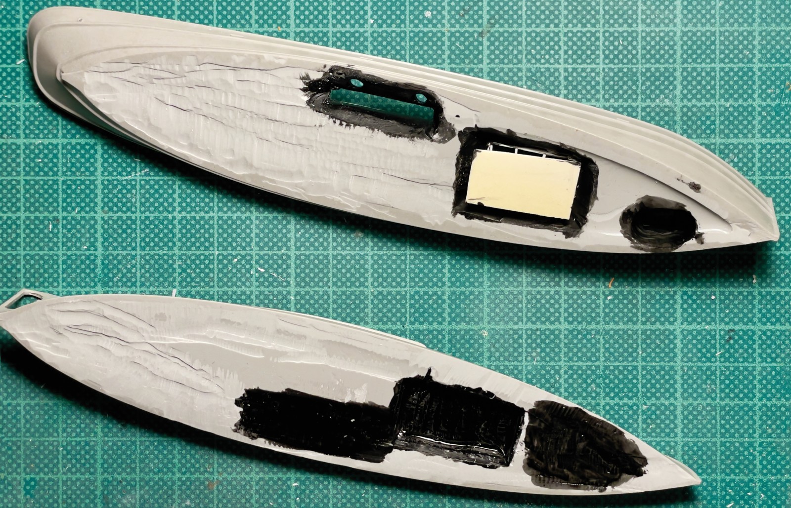 Nach dieser langen Ouvertüre ein wenig sachliches. Wie gesagt, zumeist leiten mich die Modelle und so wurde mir auch hier erst langsam klar, wo ich Einblicke gewähren wollte und zunächst, die später sichtbaren Hohlräume geschaffen werden mussten. Den Maschinenraum hatte ich schon erwähnt, doch auch die Kajütentür sollte offen stehen, der Laderaum für den Fischfang war auch klar, so wie der Abgang in den Bugbereich.