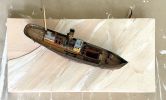 Während des Nachdenkens und Grübelns blätterte ich wieder einmal in einem von mir sehr geschätzten Buch mit hervorragenden Fotos diverser Wracks. Schnell manifestierte sich in mir die Idee, dass mein kleiner Fischkutter als Wrack dargestellt werden soll. Zu schön waren die Fotos, der dahinsiechenden Schiffe in ihrer üppigen Farbenpracht. Drei sehr unterschiedliche Wracks haben es mir angetan. Natürlich konnte ich mich zunächst nicht entscheiden und so beschloss ich eine Mischung aus allen, der drei Vorlagen zu realisieren. Zum einen wollte ich die Farbigkeit dieses kleinen Schiffes erhalten, zum anderen behagte mir auch das Monochrome einer rostigen Oberfläche. Diese Tristesse und Kälte des ersten Fotos übten auch einen unglaublichen Reiz auf mich aus, den ich zunächst nicht deuten konnte.