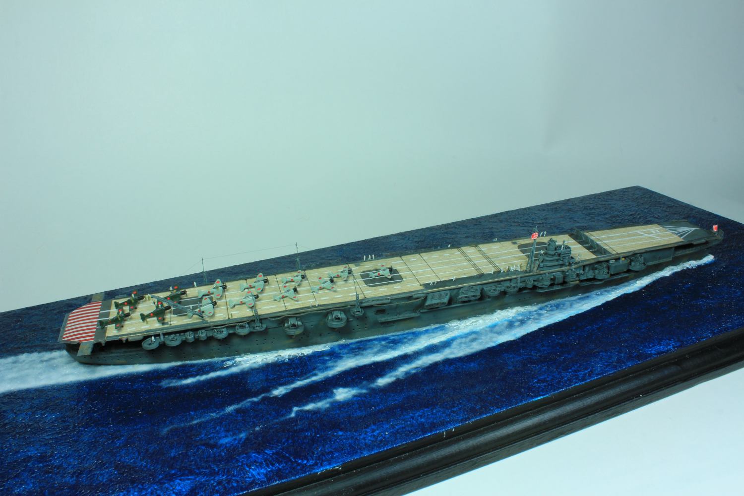 Die dem Bausatz beiliegenden A6M2 Zero (Zeke) und D3A Type 99 (Val) wurden mit Tamiya JN Gray, die B5 Type 97 (Kate) dagegen mit Tamiya JN Green mit Airbrush lackiert. Die schwarzen Motorhauben und die dunkelgrauen Cockpithauben hingegen wurden gepinselt. Nach einer Schicht Klarlack kamen die Abziehbilder drauf, die abschließend mit Mattlack versiegelt wurden. Final kamen stehende und rotierende Propeller an die Flugzeuge.